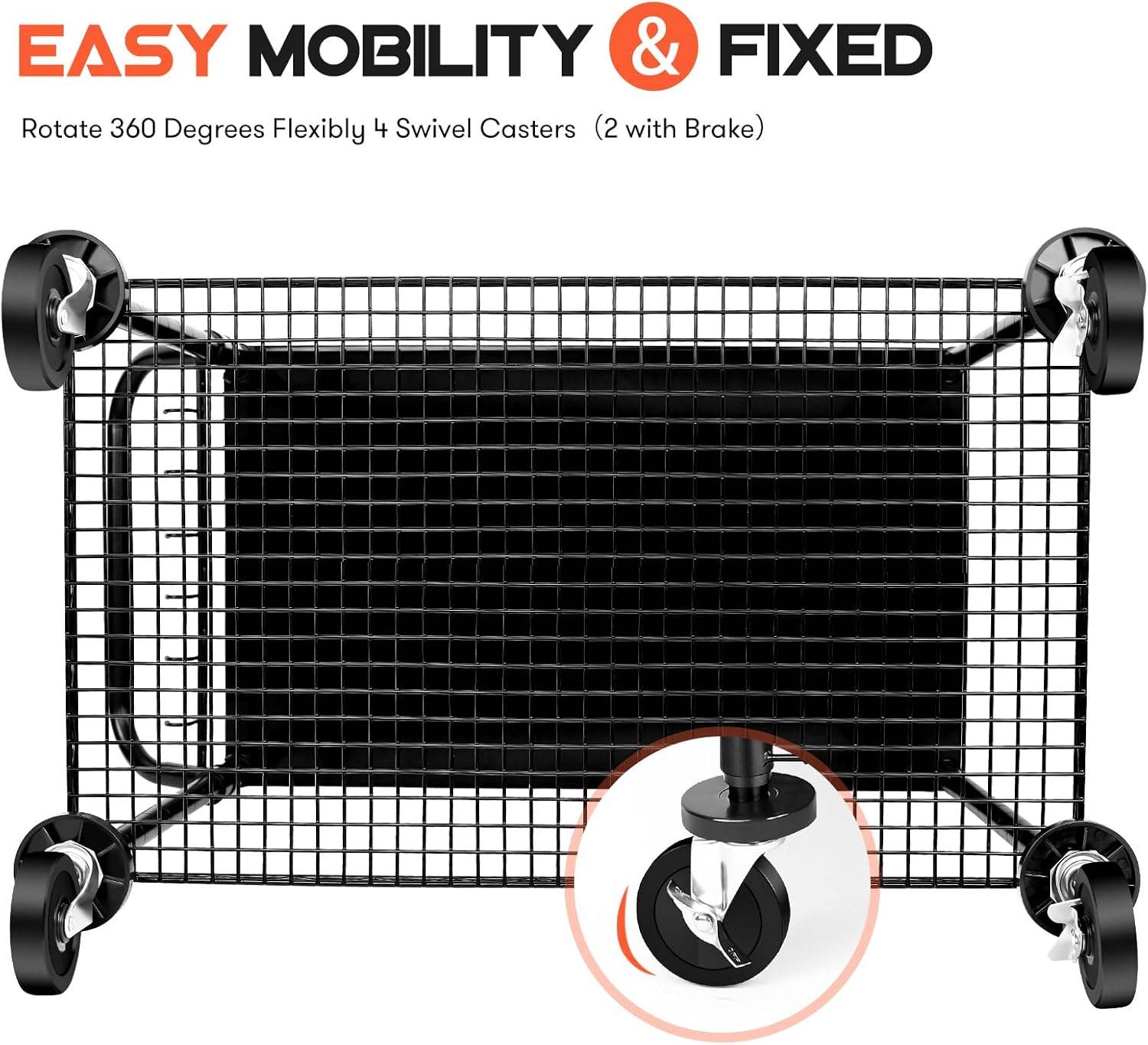 • 360° Silent Casters: The 2 tier rolling storage cart is designed with 4 silent casters; it transports heavy loads swiftly and smoothly. include 2 fixed locks wheels can hold the wire utility cart firmly in place for added stability.