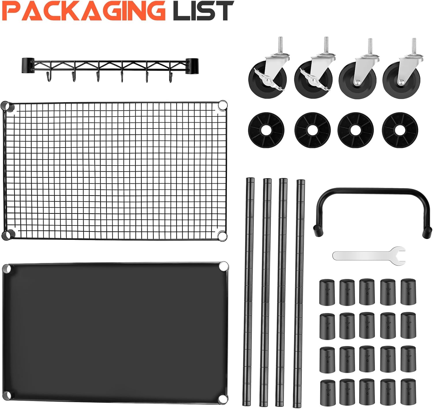 • Humanization Design: This mobile cart comes with a convenient handle push-bar, a ventilated basket, 2pcs Shelving Liners and 6 hooks. The shelves can be adjusted at 1-inch intervals for your needs.