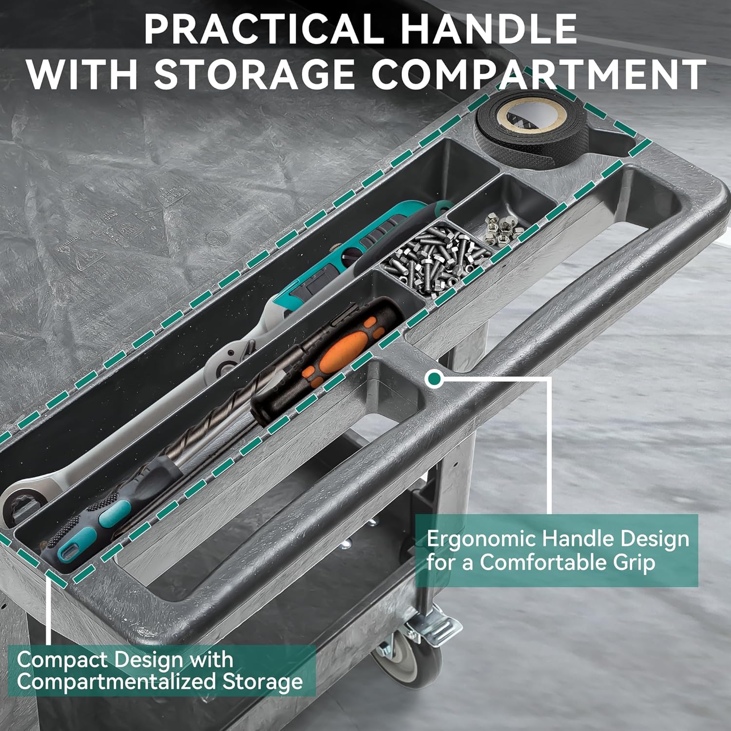 YITAHOME Utility Cart on Wheels, 550 lbs Service Cart 45 x 25 Inch Rolling Work Carts with Wheels, 2 Shelf Heavy Duty Plastic Cart Suitable for Warehouse, Garage, School & Office, Cleaning, Gray