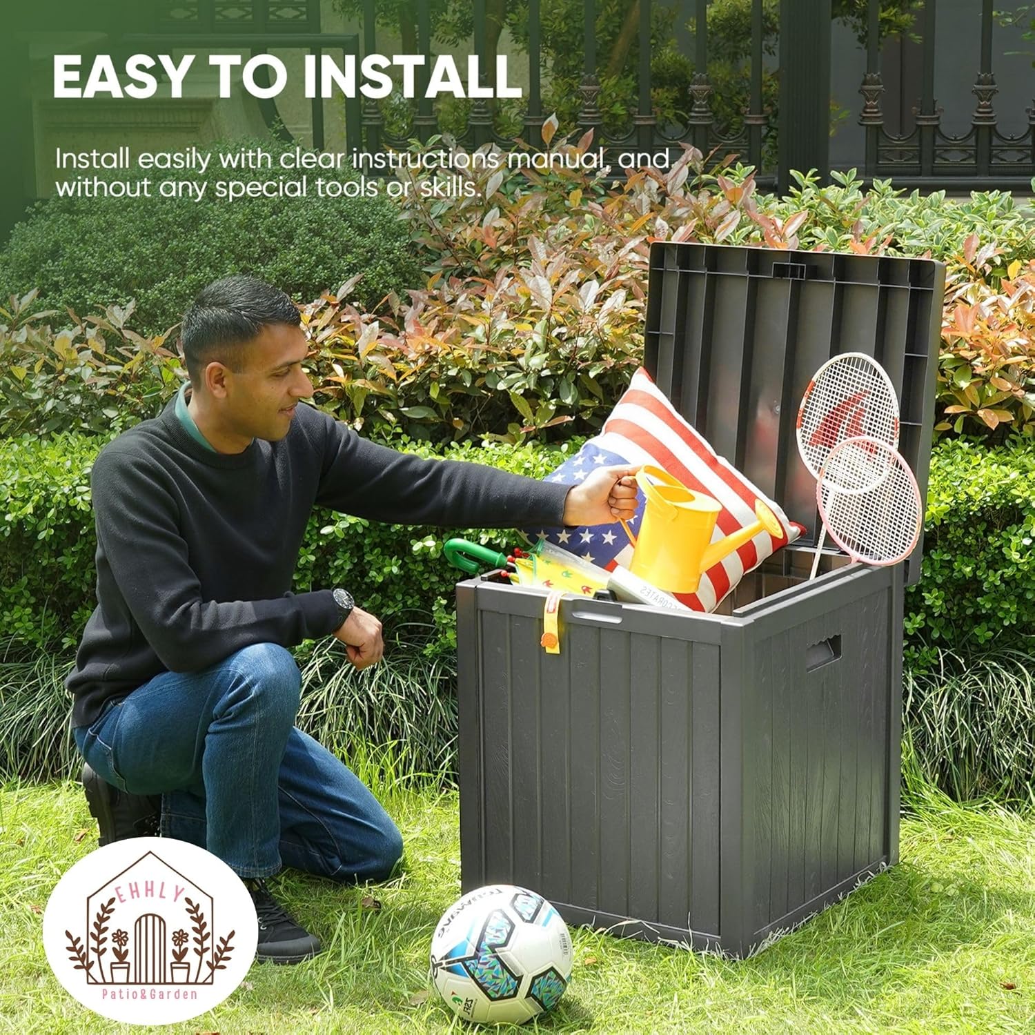 • Easy assembly and low maintenance: This waterproof patio storage box is constructed from six easily assembled pieces with clear instructions, making installation a breeze and requiring no special tools. It's even easier to install with the assistance of two people. Cleaning is a simple task, as it can be done with water directly, and the box requires minimal maintenance. If you encounter any issues, please don't hesitate to contact us, and we'll do our best to assist you.