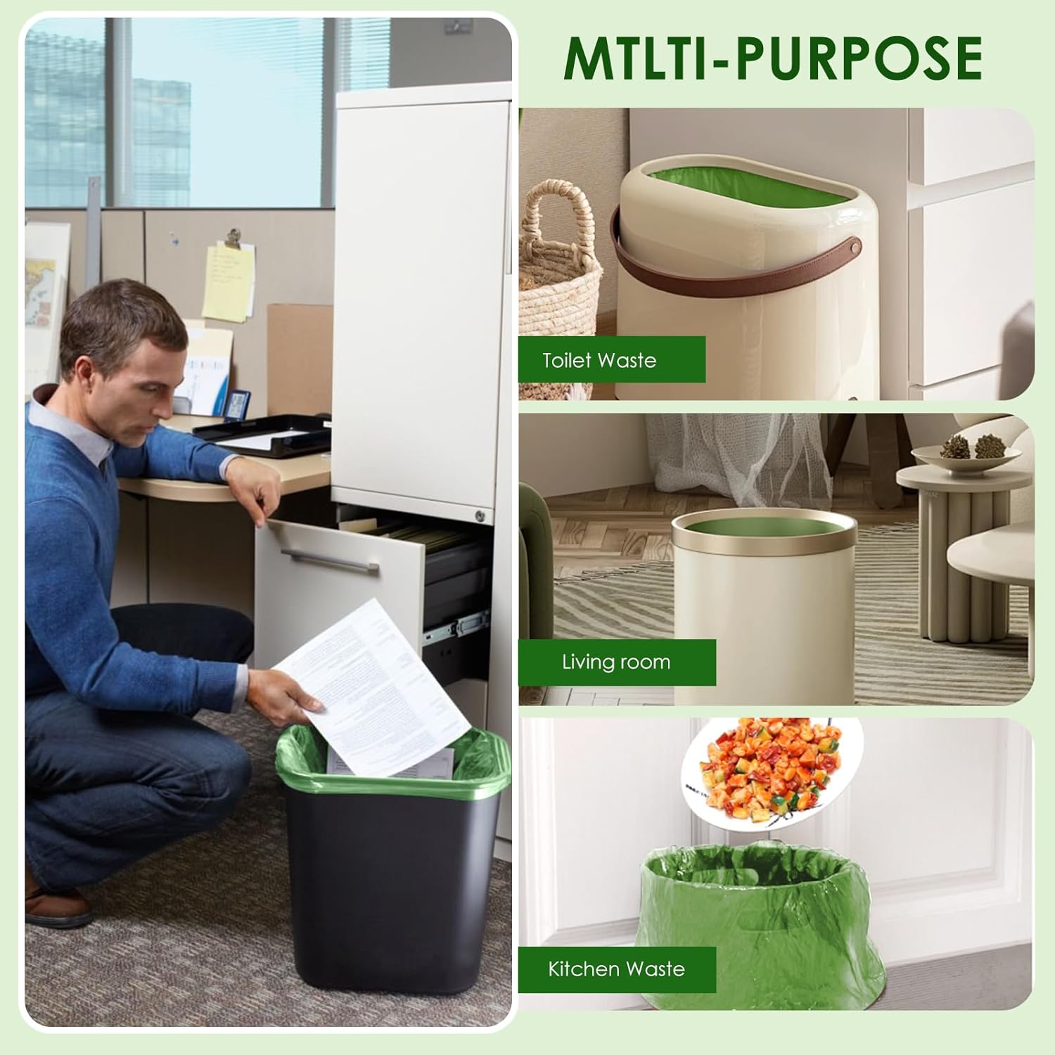 • 【Scientific Certification and Verification】Certified by BPI, OK COMPOST, and TUV, these compostable trash bags are scientifically proven to be sturdy and reliable. They are perfect for kitchen compost bins, handling heavy waste like coffee grounds, cat litter, and food scraps without tearing