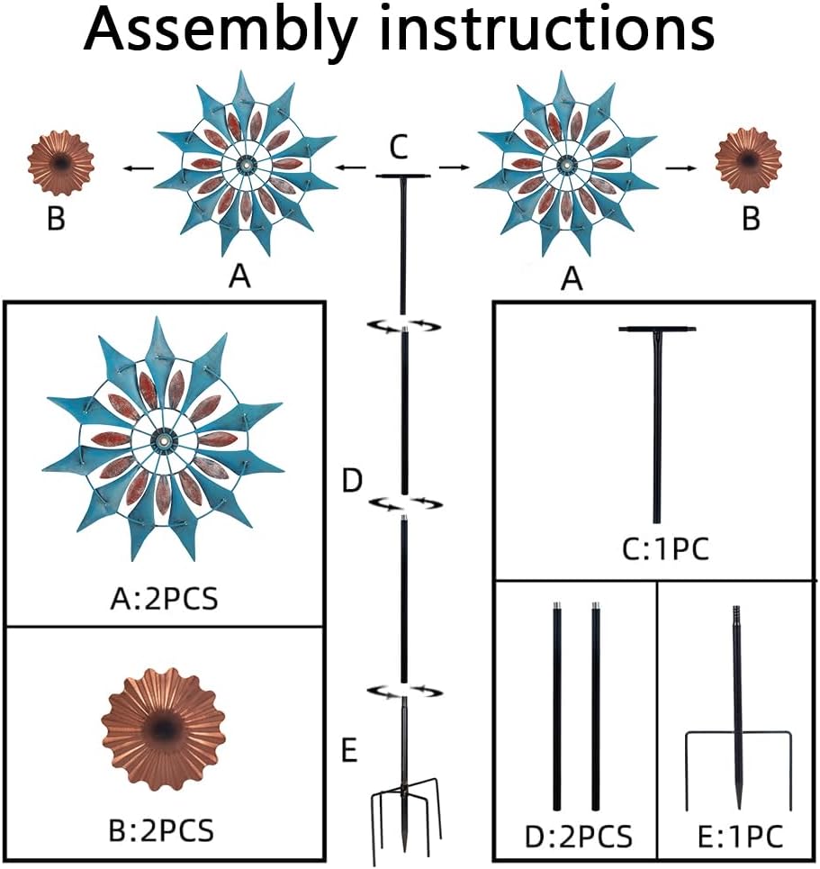 • Easy Installation:The double garden wind spinners are easy to install, no extra tools are needed, just tighten all the parts, the whole process will only take 5 minutes