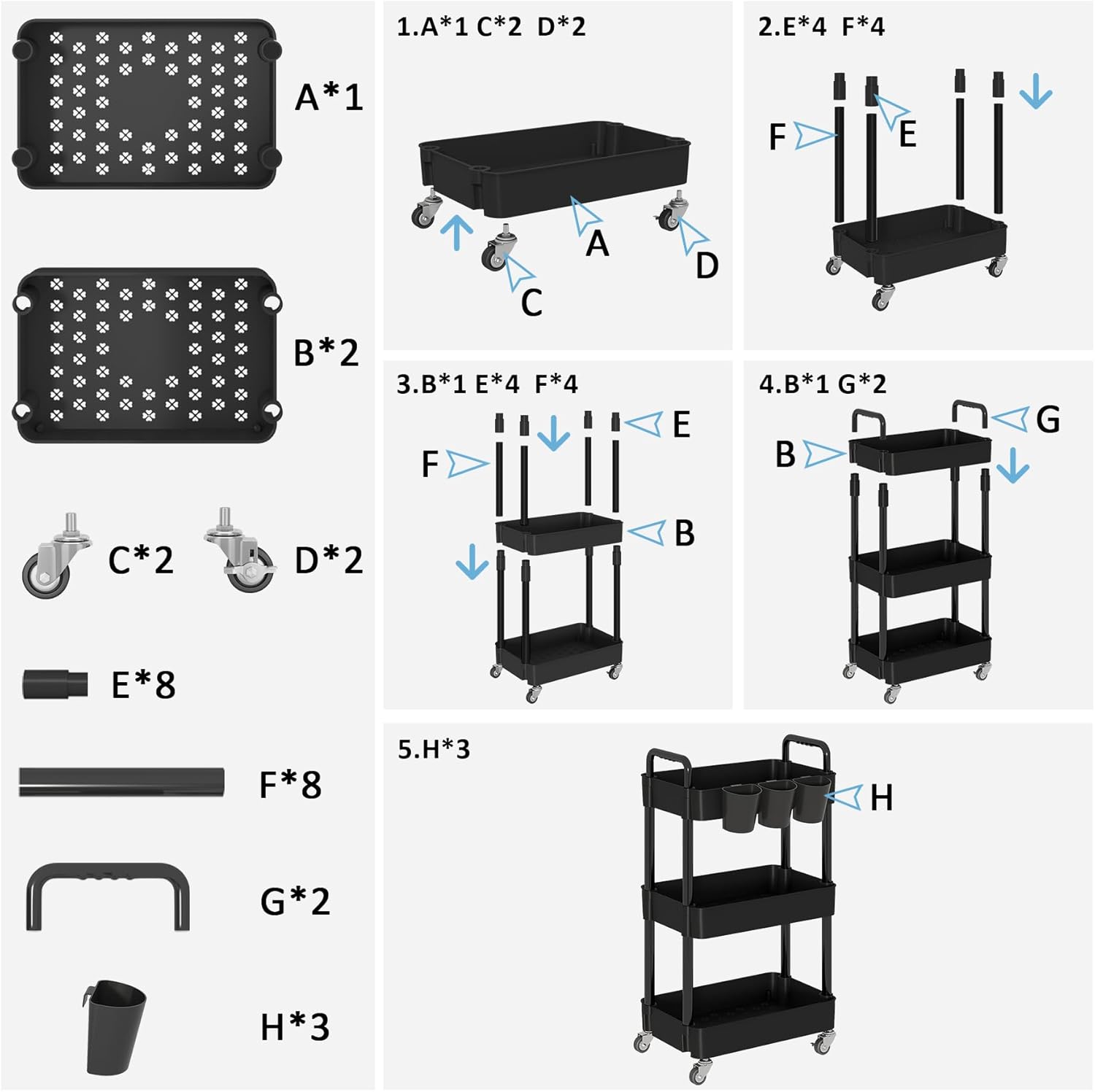 • 【Multifunctional Storage】Rolling utility carts can add extra storage space, 3-tier, classifies it carefully, and are widely used in multiple locations.In the kitchen, store food, seasonings, spice bottles, crisper boxes, paper bags, gadgets.In the living room, store snacks, teacups, books, ornaments.In the bathroom, store toiletries, paper towels, aromatherapy.Besides, it can also be placed in bedrooms, laundry rooms, baby rooms, offices, classrooms and balconies.