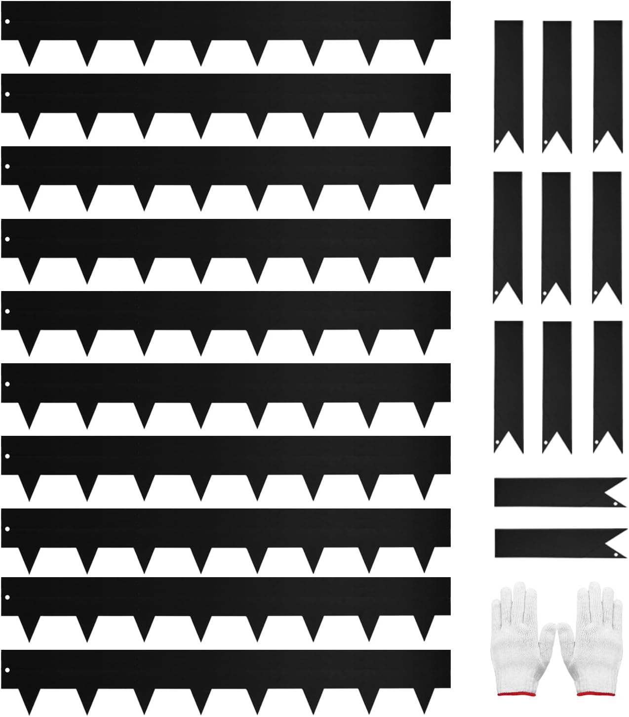 • EXTRA STABILITY: 10 Pack of 40" L x 6.5” H each, total 33 feet metal landscape edging come with 11pcs steel splicing edging stakes(8.66 inches) offer extra stability, which are securely connects the two edgings without loosening.