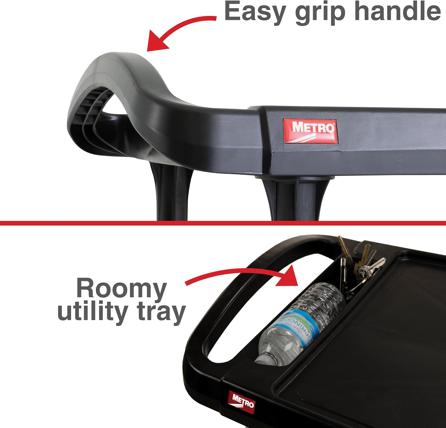 Metro myCart Plus Utility Cart - Choose-Your-Height Adjustable Heavy Duty Rolling Cart for Home, Commercial and Industrial Use - 3-Shelf, 500 lbs Capacity - 27.7" W x 40.25" L x 36.8-40.8" H - Black
