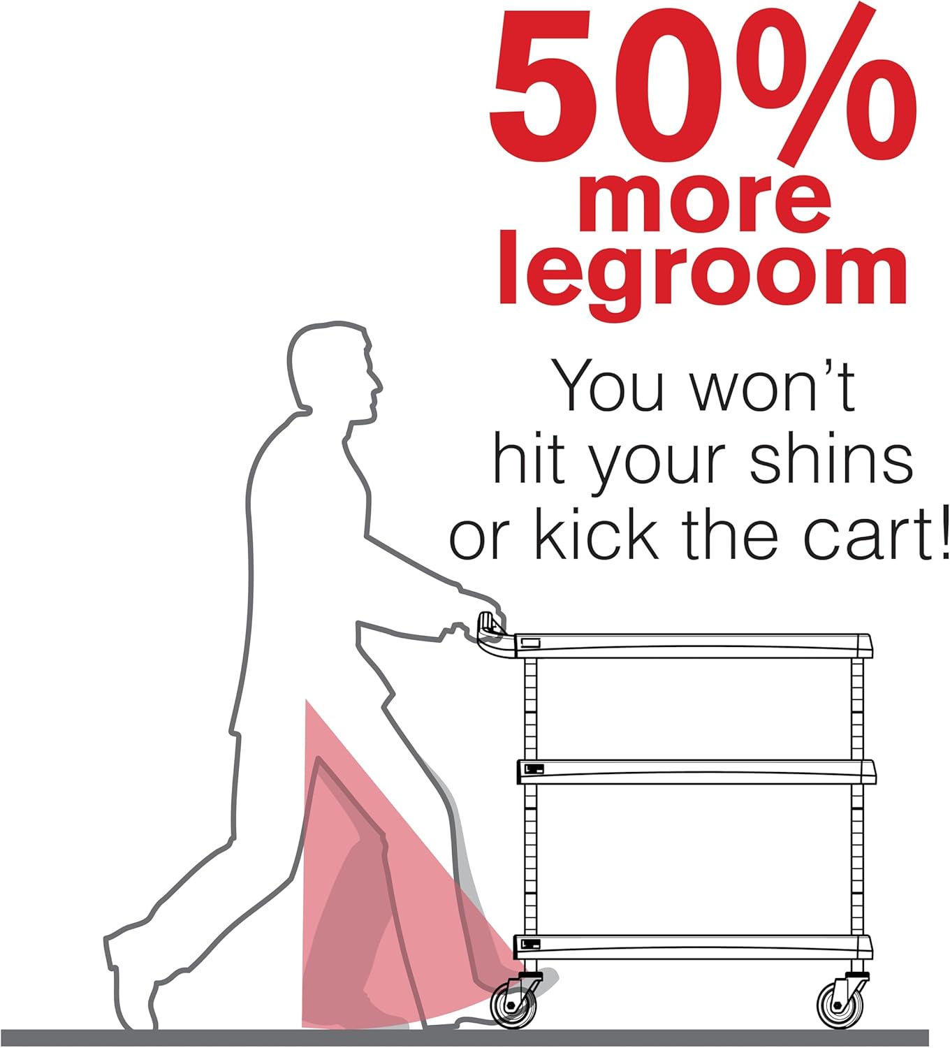 • Ergonomic and Easy to Maneuver: With five height options for the top shelf, the handle can be positioned at an ergonomic placement for users of all heights. This large utility cart has four non-marking swivel casters for easy mobility even in tight spaces and 50% more legroom to reduce tripping and painful shin bumps. Our roll cart comes in 2 and 3-tier carts with wheels to offer a good balance of storage space, capacity, and maneuverability.