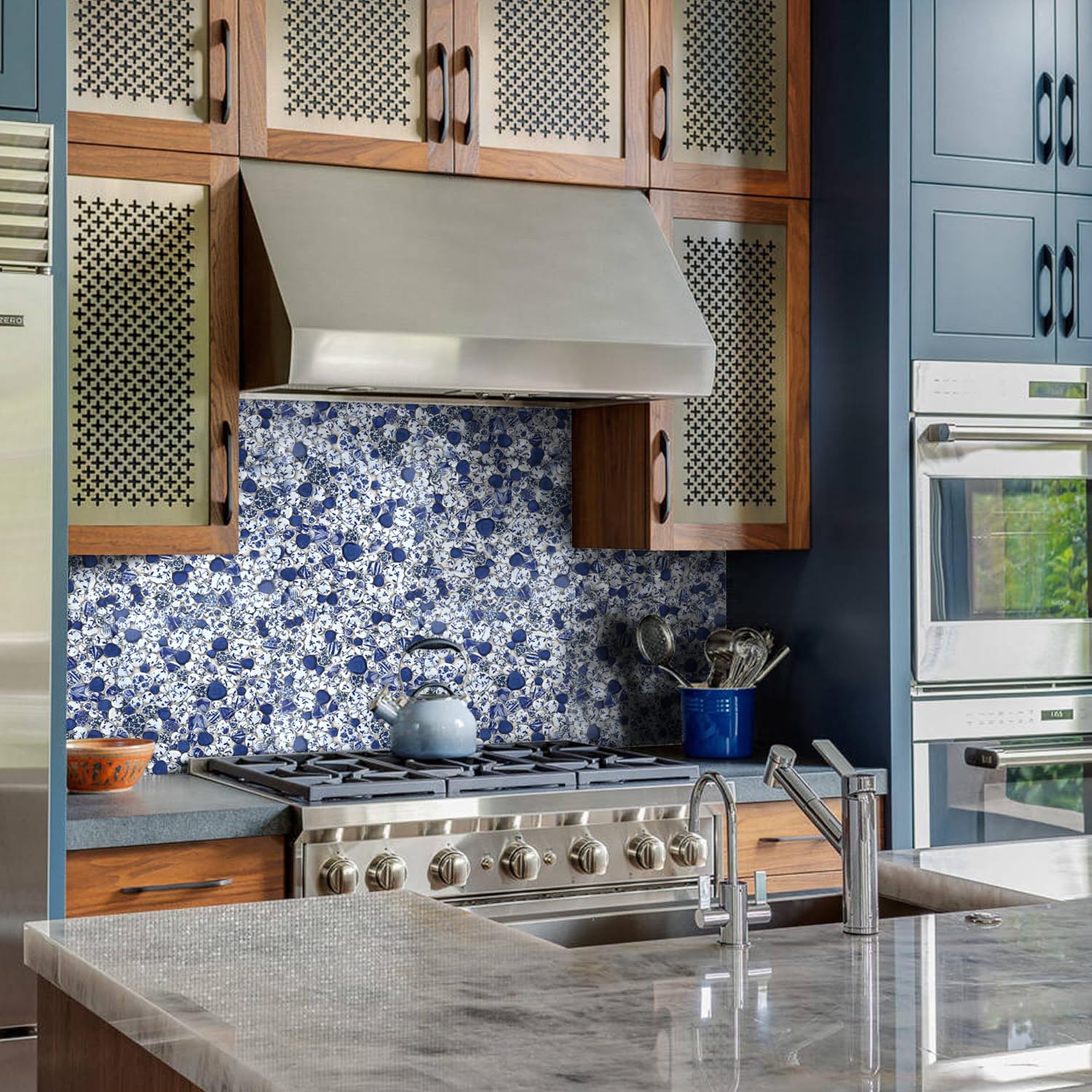 Blujellyfish Blue & White Pebble Tile Porcelain Mosaic Tiles for Art Deco (Pack of 5)