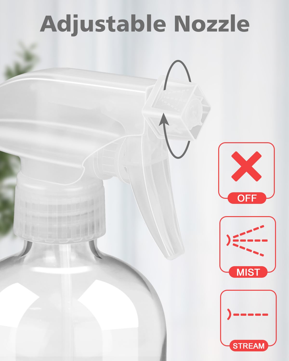 • Function: Glass spray bottles can be used in a variety of environments. Meet your needs for household cleaning solutions, misting plants, environmental moisturizing, personal care, cooking, making fragrances and many more. The large 16OZ glass spray container brings convenience to your life by eliminating the need to add liquids frequently.