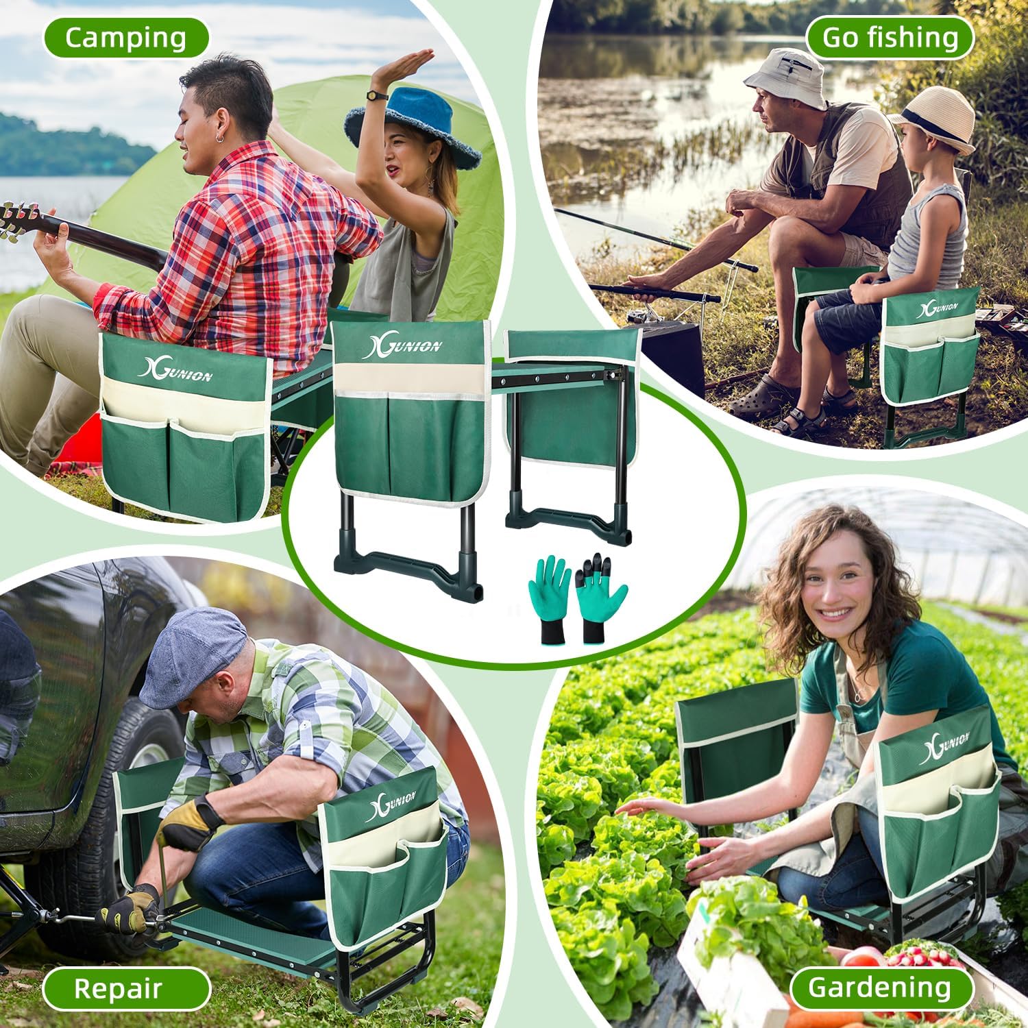 Garden Kneeler and Seat Gardening Stool Heavy Duty Garden Kneeling Bench with Handles Seat Bench Comes with Tool Pouch & Gloves Gardening Gifts for Seniors Women & Men (Green)