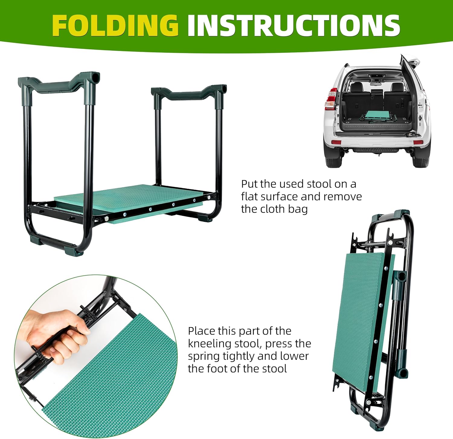 • 【Portable & Stable】:The garden kneeler and seat adopts a scientific structure and the legs of this garden bench has non-slip design to ensure you stay stable while kneeling or sitting. What's more ,Our garden seat is foldable and lightweight (5.4 LBS), you could take it anywhere easily and conveniently with one hand. Garden kneeler can also be stored in any corner, portable and space saving.