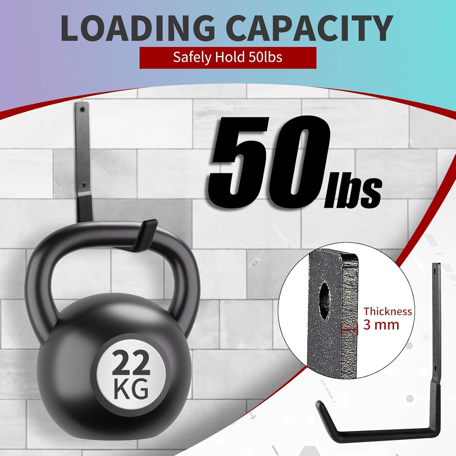 • VARIOUS FUNCTIONS - Our utility hook is a flexible wall mounting solution for bikes, cables,hoses, spade, broom, wrench, stroller, skates, gym bags, shovel, rakes, kayak, sports equipment, sawhorses, and electrical cords,gym bars, Body Training and core strength builders and other items.