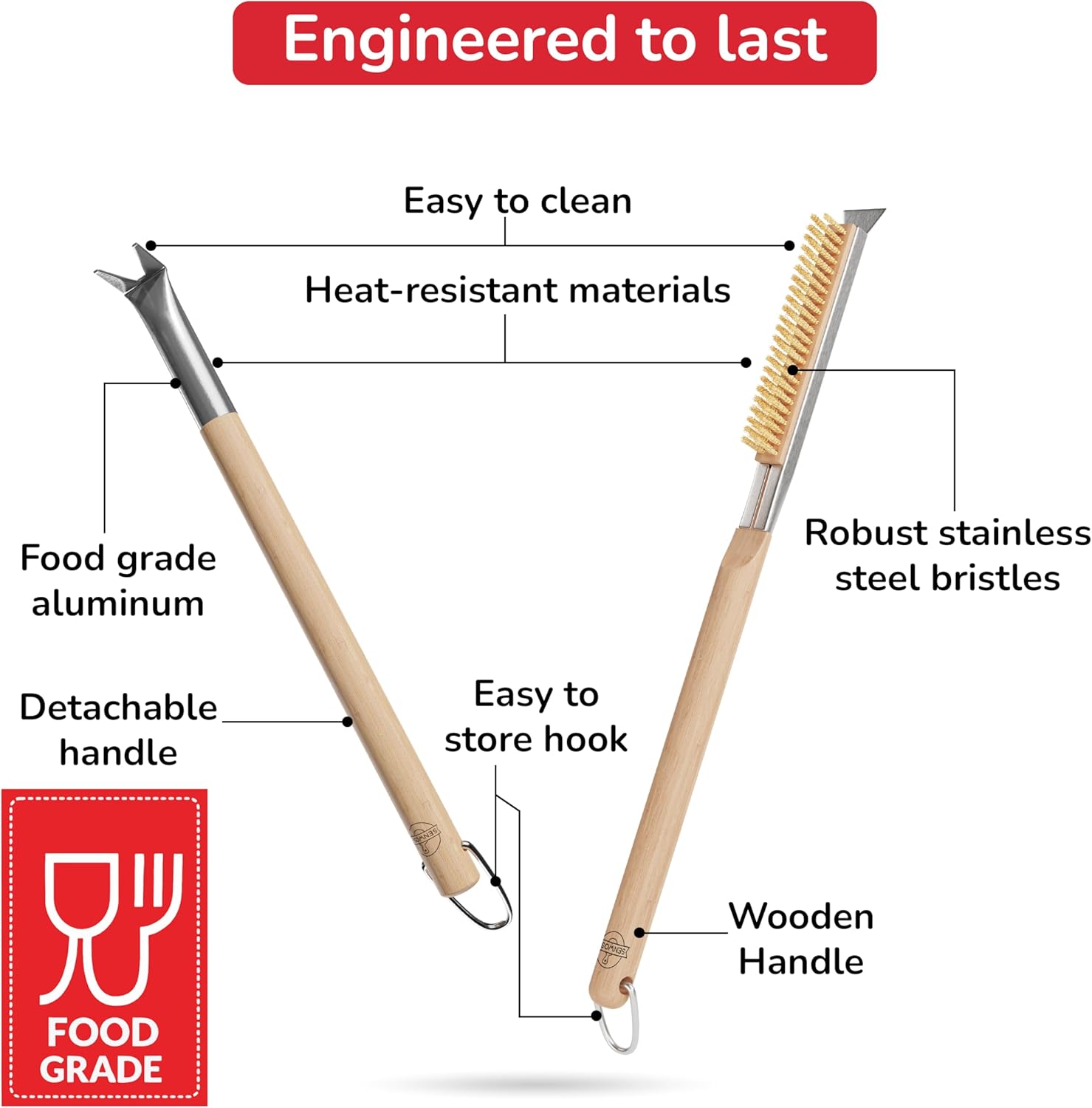 • Durable Materials: With heat-resistant, robust stainless steel bristles and food-safe aluminum, the set promises exceptional performance and longevity, ensuring the tools withstand rigorous use and high temperatures.
