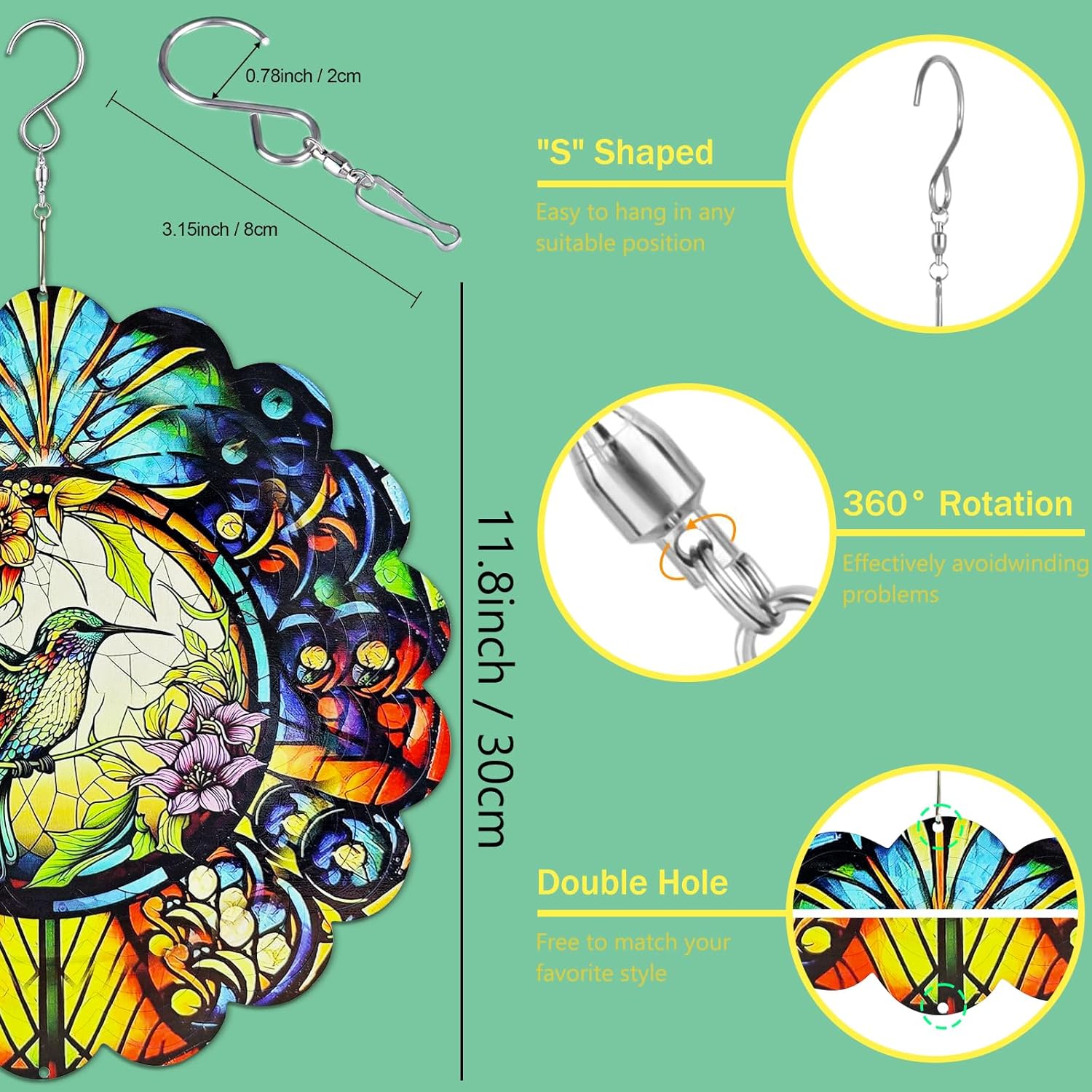 • Premium Quality and Durability:Crafted from high-grade stainless steel, this wind spinner is designed to withstand the elements. The hummingbird design is laser-cut with precision and coated with a UV-resistant, anti-fade finish, ensuring long-lasting vibrancy and durability even in harsh weather.
