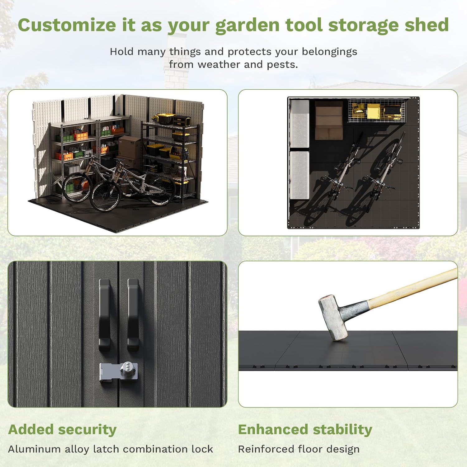 • Oversized Storage Space: Our shed is designed in 91.9"D x 91.3"W x 94.5"H, provides ample storage for a wide range of items, from gardening tools and equipment to bicycles, sports gear and outdoor furniture. It will fulfill your most outdoor storage needs and is a great addition to your patio.