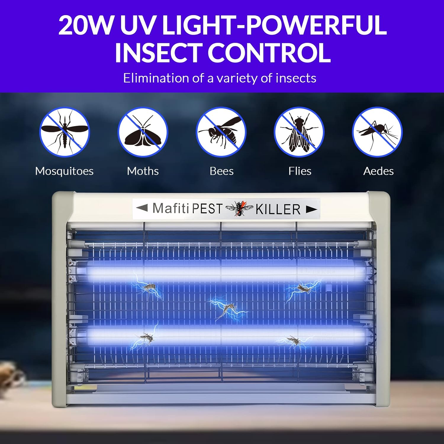 • 【 Effective Bug Zapper Indoor 】 This fly trap attracts mosquito, flies, moths, wasp, gnats, beetle and other flying insects using two UV light bulbs. They are trapped and electrocuted in the electrically-charged high voltage metal grids. With 20W UV bulb ,this mosquito killer lamp can kill flying insects in 583 sq ft ! One mosquito and fly killer traps is enough for your house! Easy, Efficient,Eco-friendly!