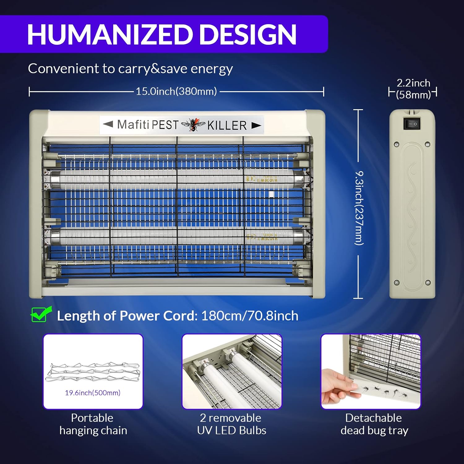 • 【 Safe and Eco Friendly 】 No any safety risk to you or the environment.Enjoy commercial strength pest control without the need for dangerous traps, repellants, poisons, sprays, chemicals or costly treatments. With protective grid to keep your kids and pets out of internal electrified grid. Its detachable grid design also allows you to replace the bulbs more portable.