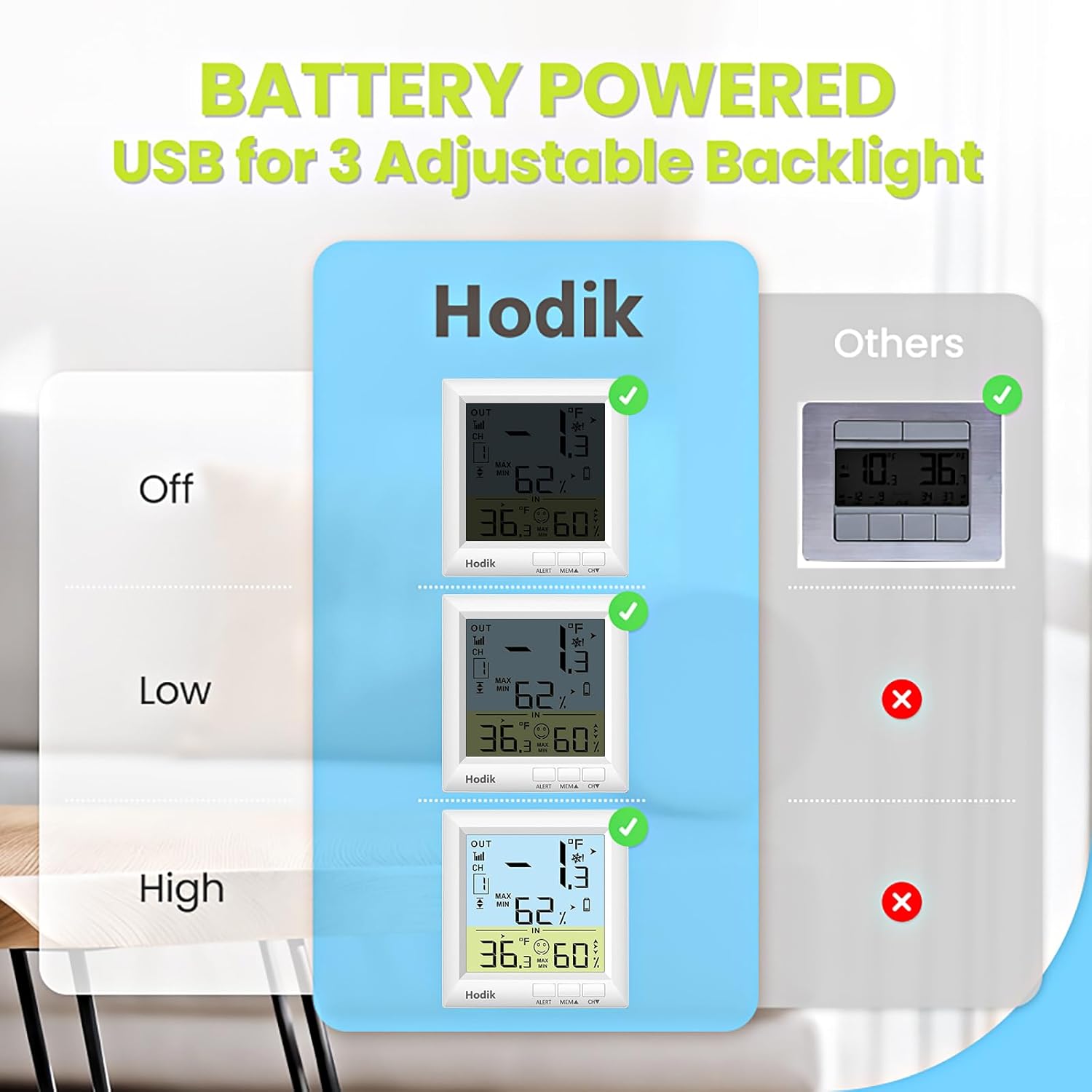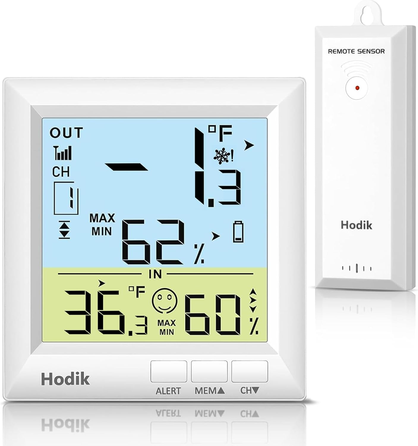 • 【Pre-calibrated Sensor】: This digital refrigerator thermometer with alarm is smart and accurate, with a temperature accuracy of ±0.5°F and humidity of ±2%. Sensor temp range: -40 °F to 158°F; humidity range: 1% to 99%, perfect for refrigerator, also widely use for different occasions.