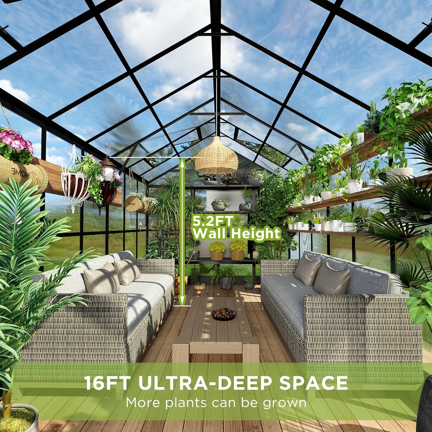 • 15.7x7.5x7.4 FT Hobby Greenhouse & Sunroom: Recommended foundation size: 17x8.5 FT. 6mm Twin-wall translucent PC panels(UV Protection 99.99%)