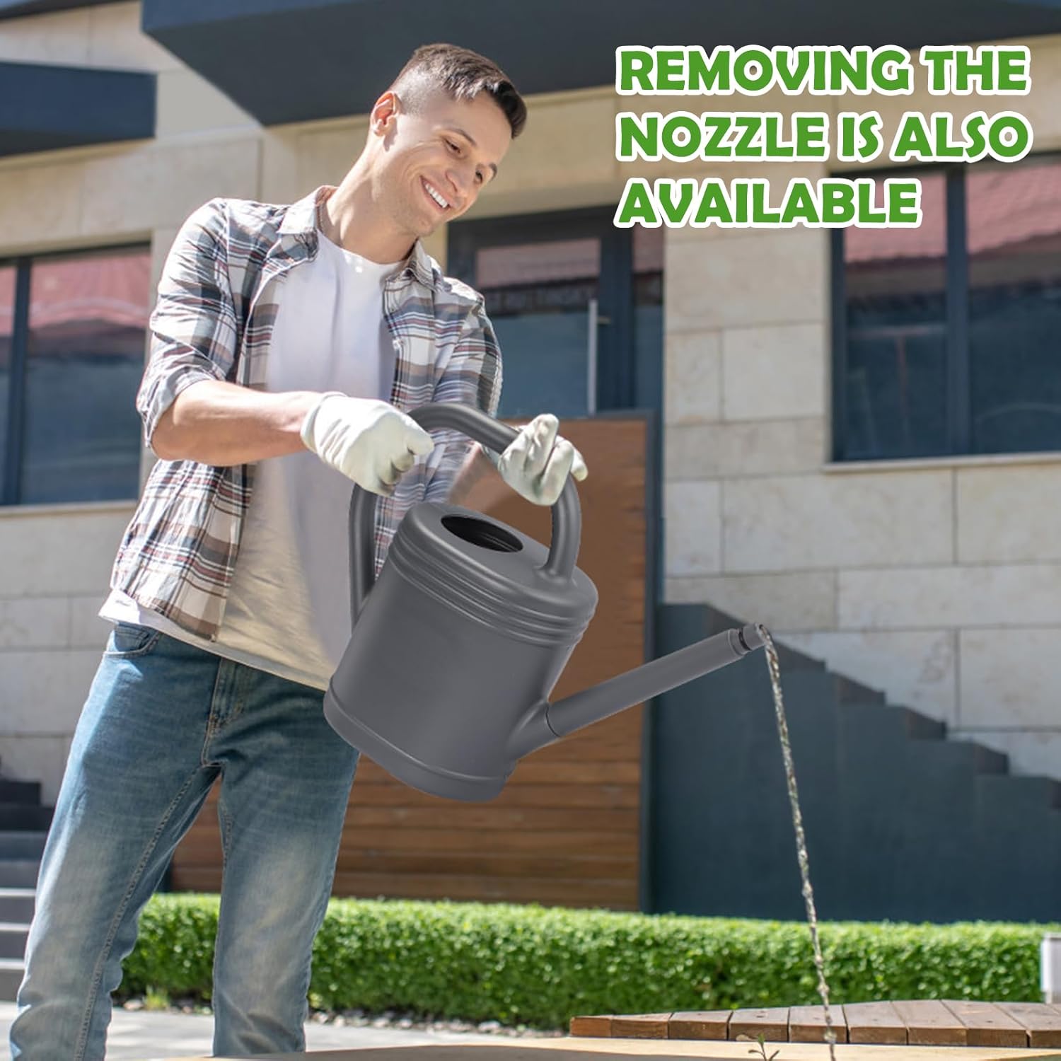 • UPGRADED DETACHABLE CONVERTIBLE NOZZLE: With the help of the watering can's detachable shower nozzle, you can water your hanging or wall-mounted plants with great ease. Indoor and outdoor plants benefit from its multipurpose design's ability to manage water flow more delicately and precisely.