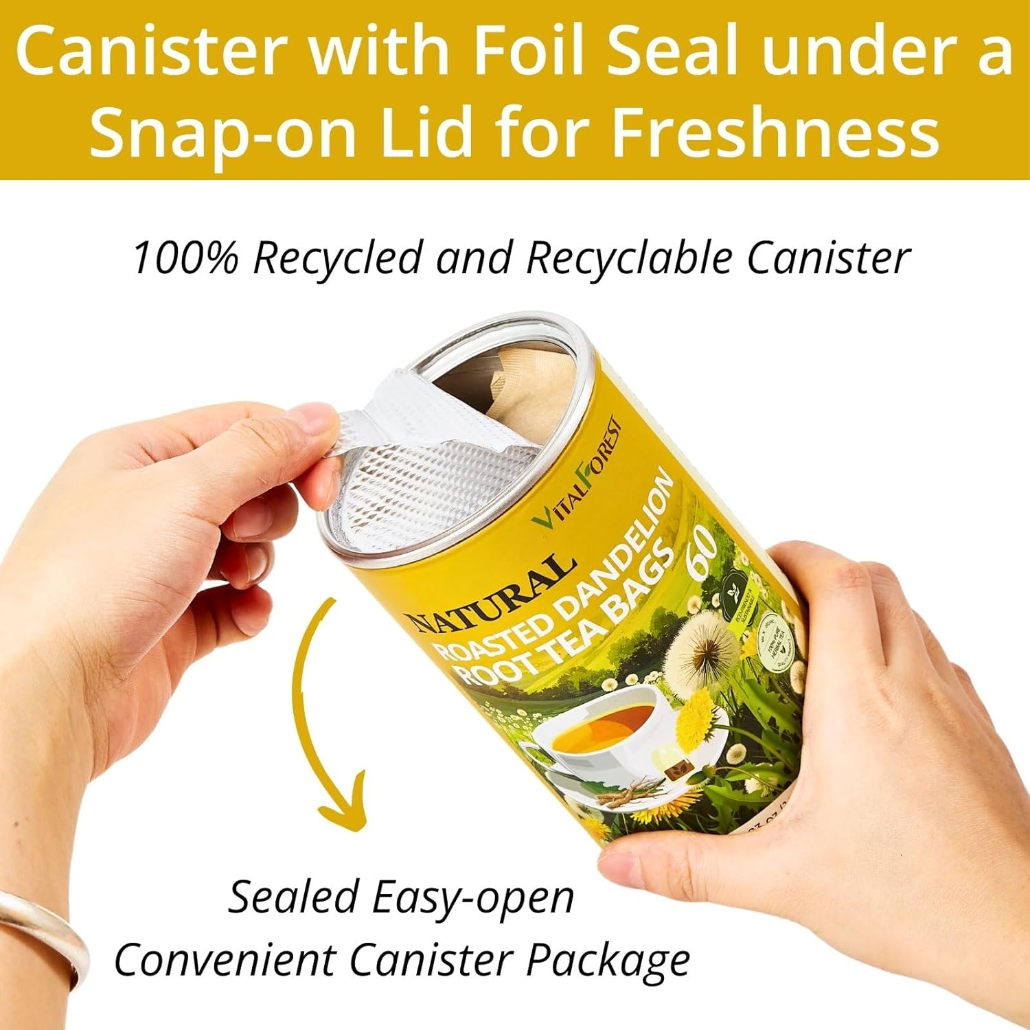 • [ Eco-Conscious Tea Bags & Canister ]: Our best dandelion root tea are made from unbleached bag, they contain no strings, wrapping, staples, adhesive, bleach, or dyes, good for the environment and health. Enjoy pure, high-quality tea leaves in biodegradable-bags. And special convenient canister with lid. There is a foil protective seal under the lid - easy to remove and useful to keep the bags fresh