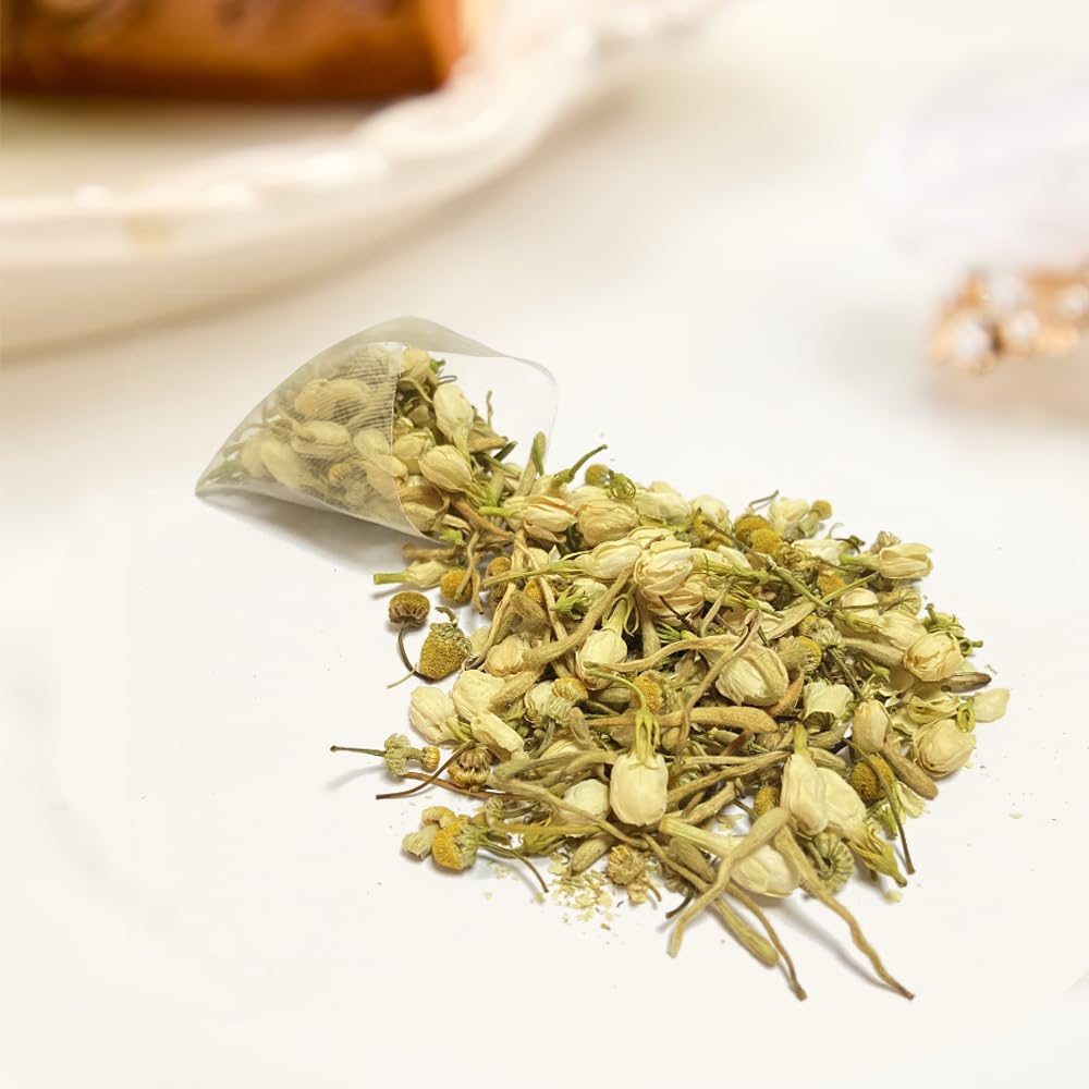 • SOOTHE & REFRESH: This tea bag is made with high-quality chamomile and fragrant jasmine flowers, blending chamomile’s natural calming effects with the pleasant aroma of jasmine for a dual experience of relaxation and delight. Whether in the afternoon or evening, chamomile jasmine tea can help ease your mood and rejuvenate your spirit