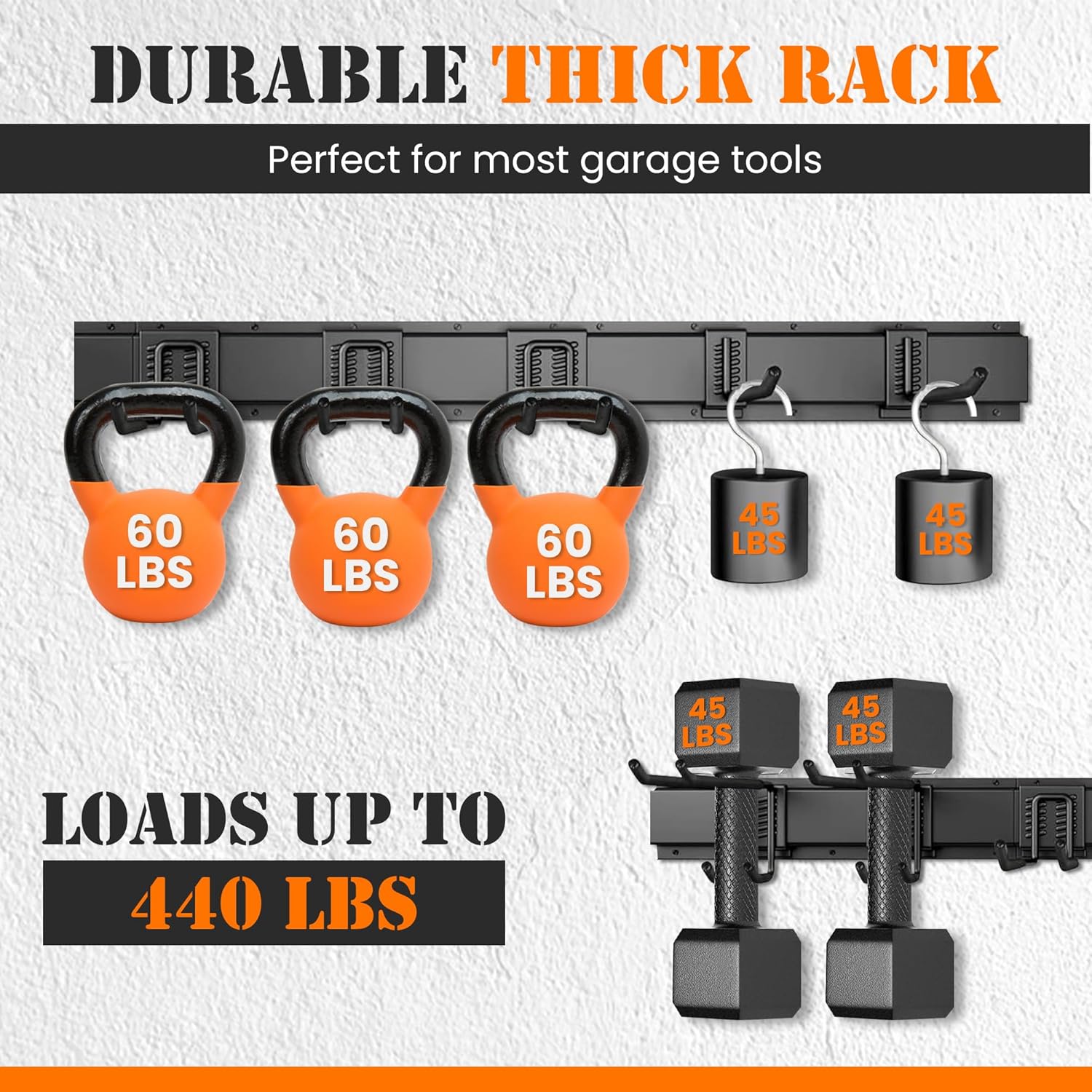 Garage Storage, Garage Organization, Garage Tool Organizer Wall Mount, Garden Tool Organization and Storage 48.1 Inches, Max 450lbs Adjustable Metal Hooks, Hangers Garden Yard Tool Rack,