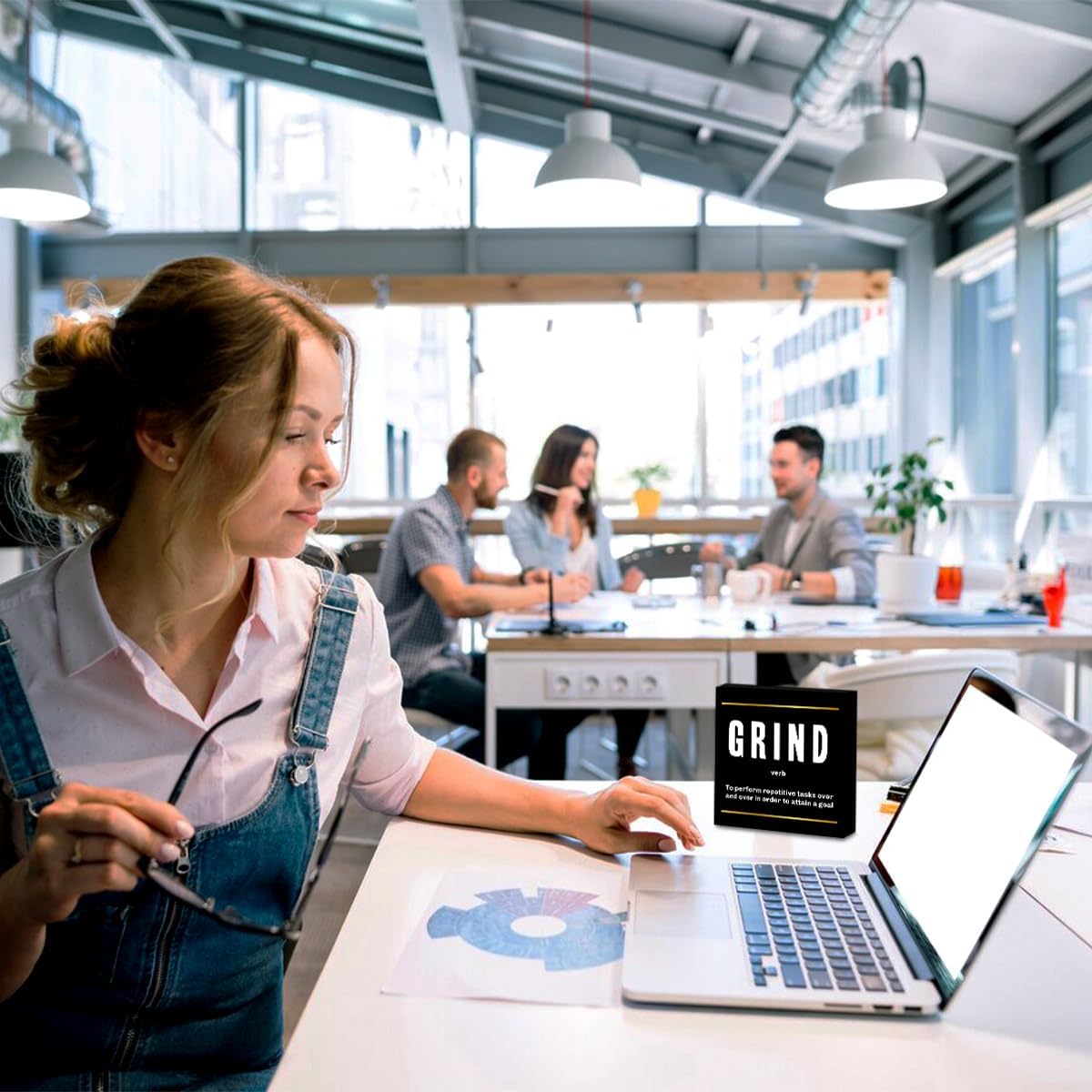Grind Definition Entrepreneur Black Wooden Box Sign, Inspirational Office Decor Decorative Table Shelf Desk Decor, Rustic Workplace Farmhouse Home Cubicle Decor Office Decorations Desk Accessories