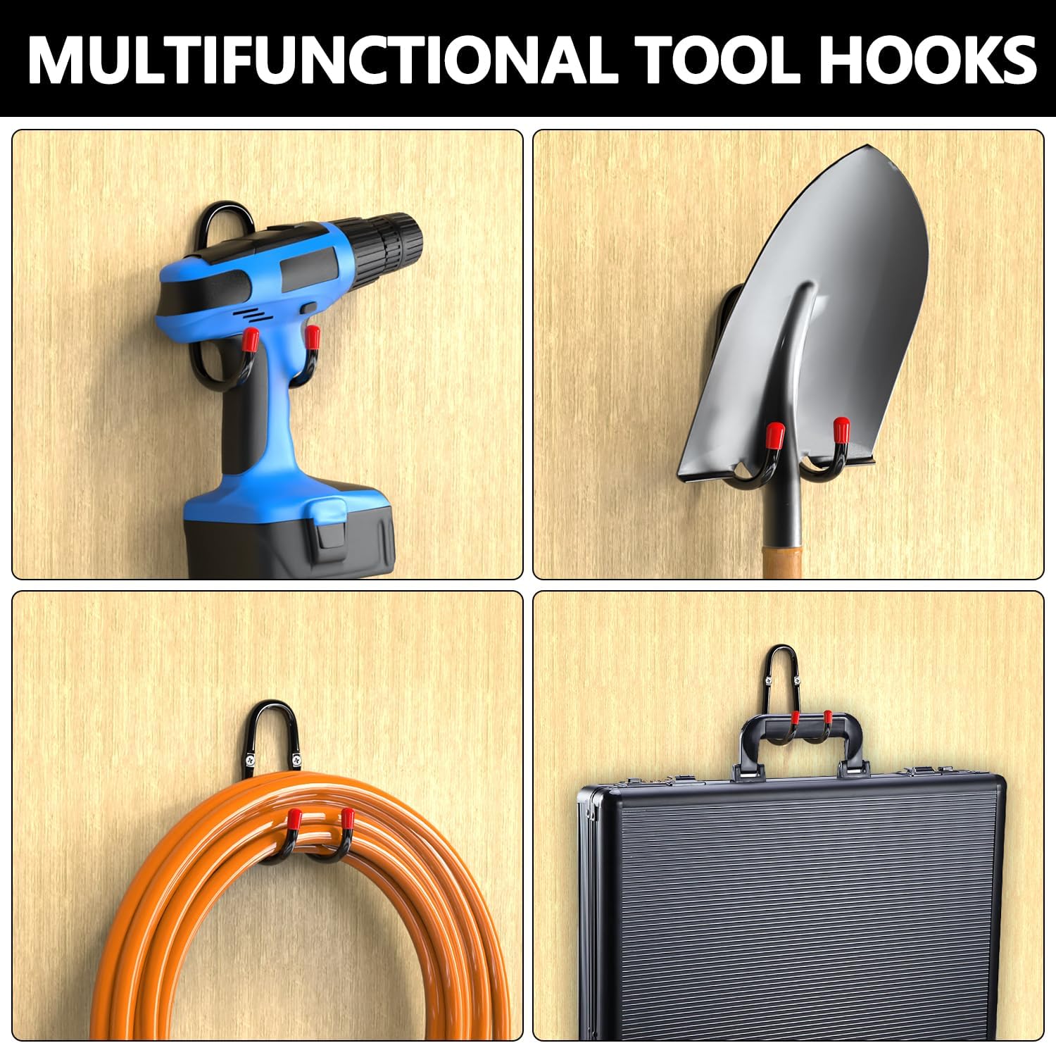 • Upgrade steel material and backboard: Our extra large square garden hose hook upgraded the backboard and added additional support points, which solves the problem of traditional hose hook where the backboard and steel material tend to separate at the welding points under long-term heavy loads. The heavy duty hose mount is made of construction-grade 8mm steel bars, so that our garage organizer can hang 10kg more weight than traditional hooks