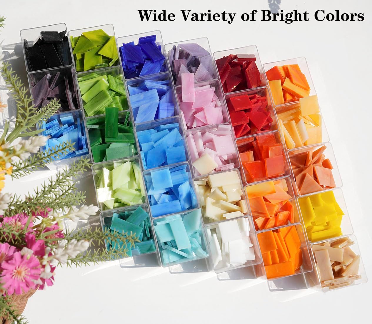 • NO DULL COLORS—JUST BRIGHT & BOLD: Every tile is carefully crafted with vivid, vibrant hues, making sure your artwork shines with radiant colors. No dull tones, only brilliant, eye-catching shades to bring your glass designs to life