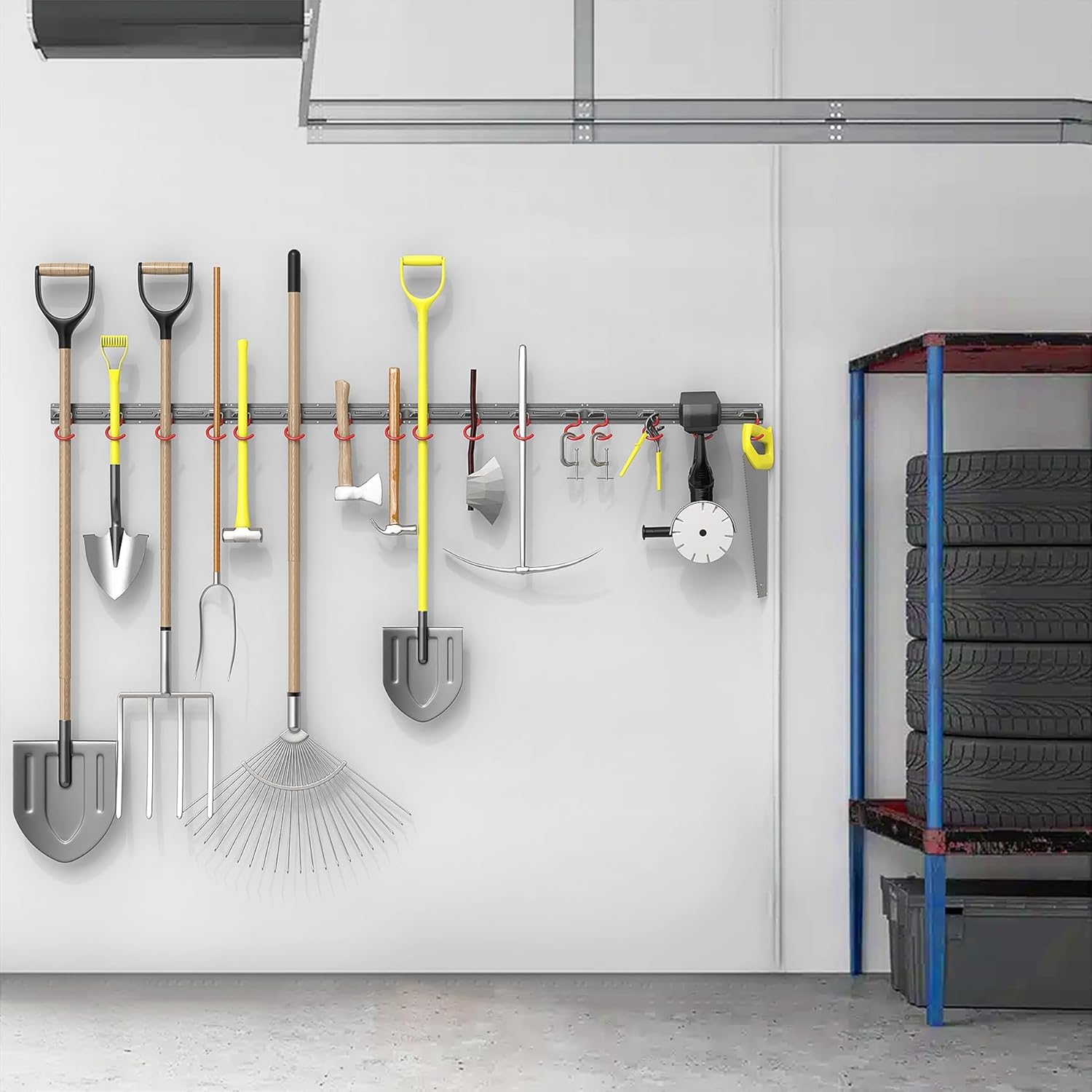 • Wall-Mounted Tool Organizer: Declutter your garage, shed with this sleek, all-metal tool rack. Perfect for storing tools like rakes, shovels, brooms, mops and more in a neat, wall-mounted setup