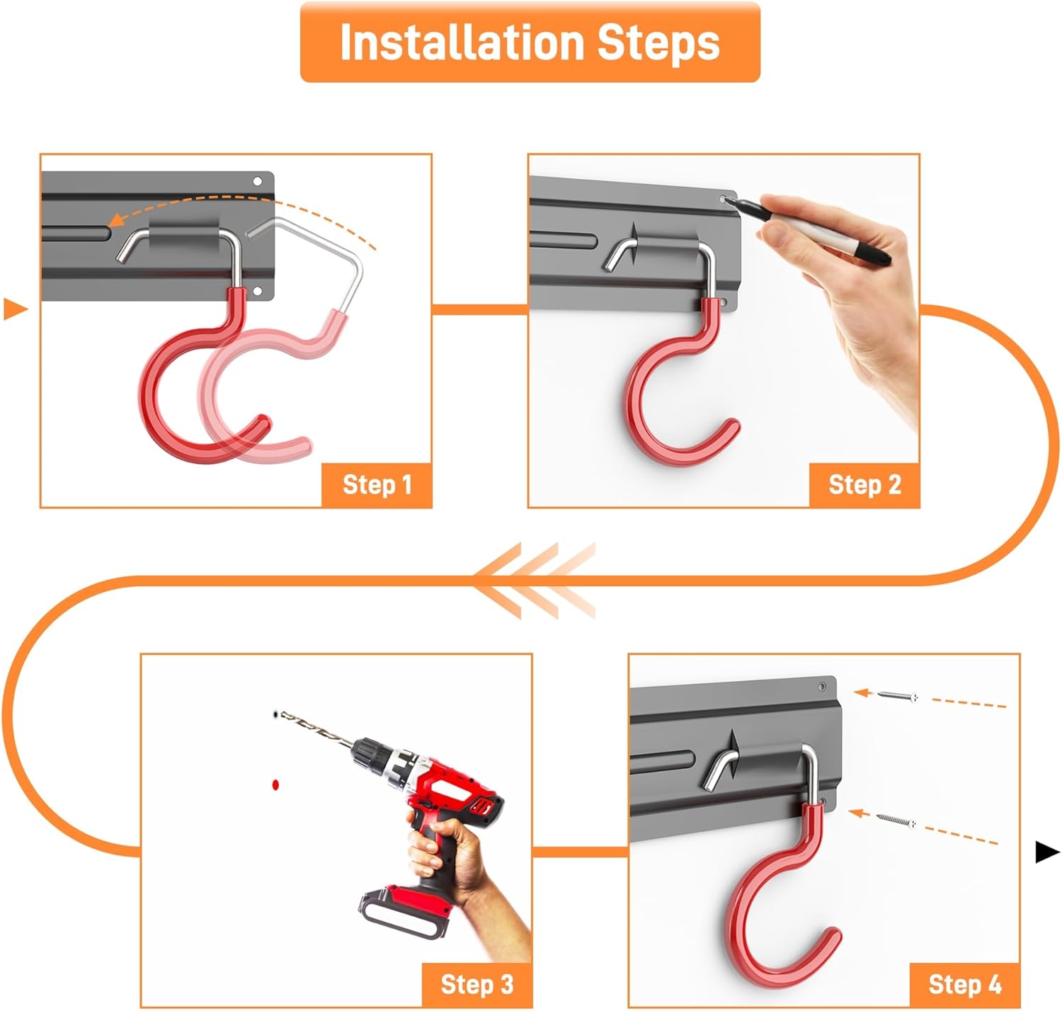• Durable and Lightweight Design: Made from sturdy yet lightweight metal with rubber-coated hooks to prevent scratches, this tool hanger holds up to 96 lbs (6 lbs per hook), making it perfect for heavy-duty tools