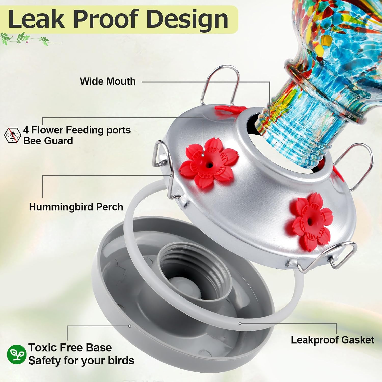 • Attract More Hummingbirds: XAROO hand-blown glass hummingbird feeder has bright and vibrant colors, effortlessly attracting surrounding hummingbirds to your yard. 4 feeding ports provide habitats for multiple hummingbirds