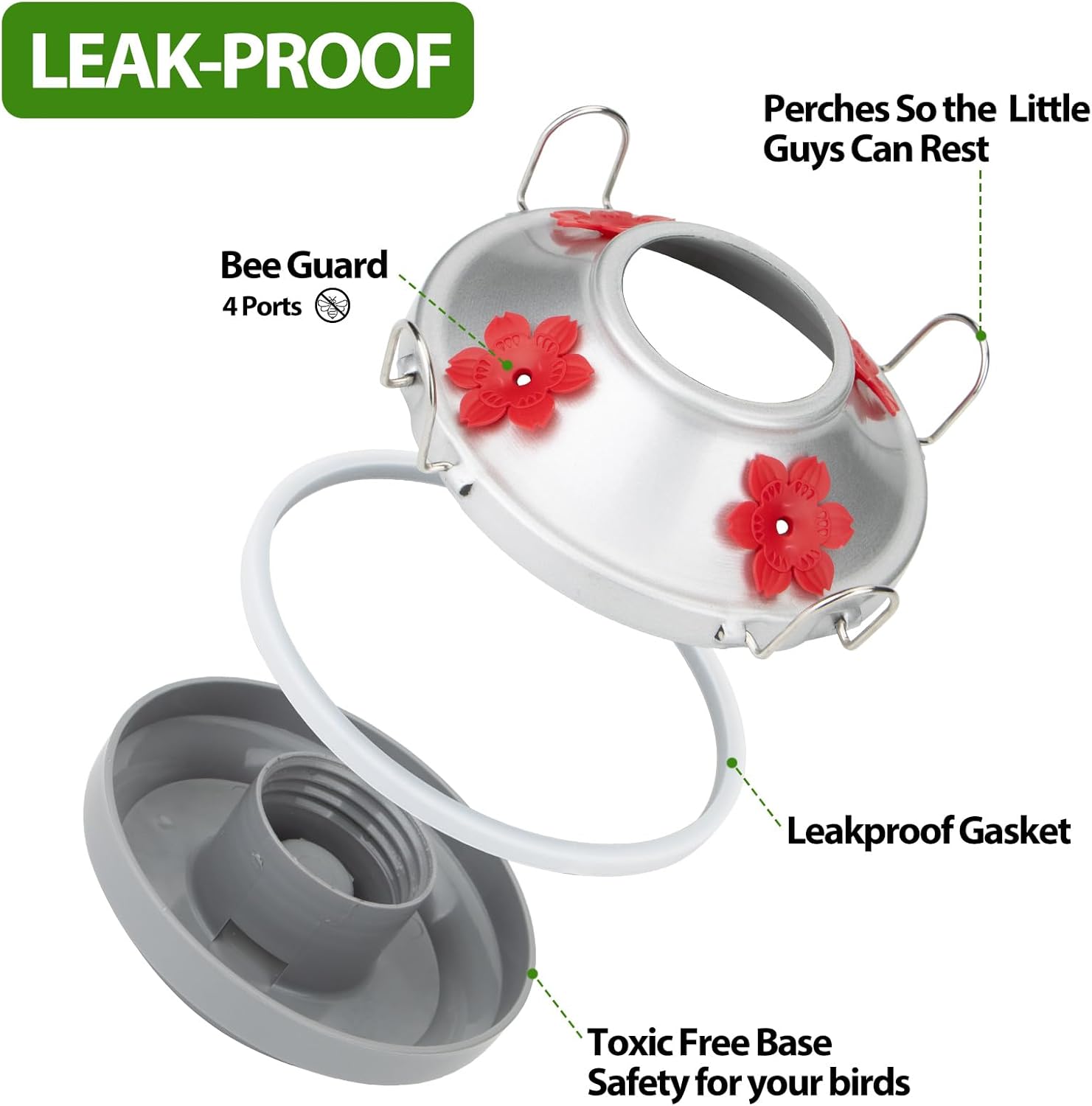 • LEAKPROOF FUNCTION: Built-in durable gasket, unique design makes base connection proper and seamless, even when the feeder is jostled by wind or birds landing on it