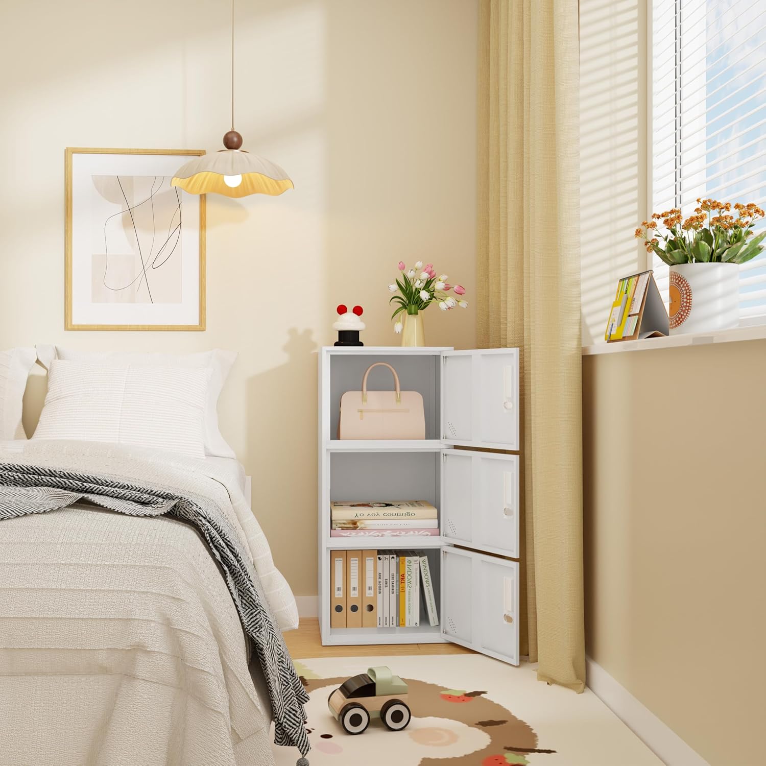 3 Door Metal Vertical Storage Locker for School, Office, Home,Gym,Stackable Steel Storage Cabinet with Lock,Anti-Falling Device. (3 Door, White)