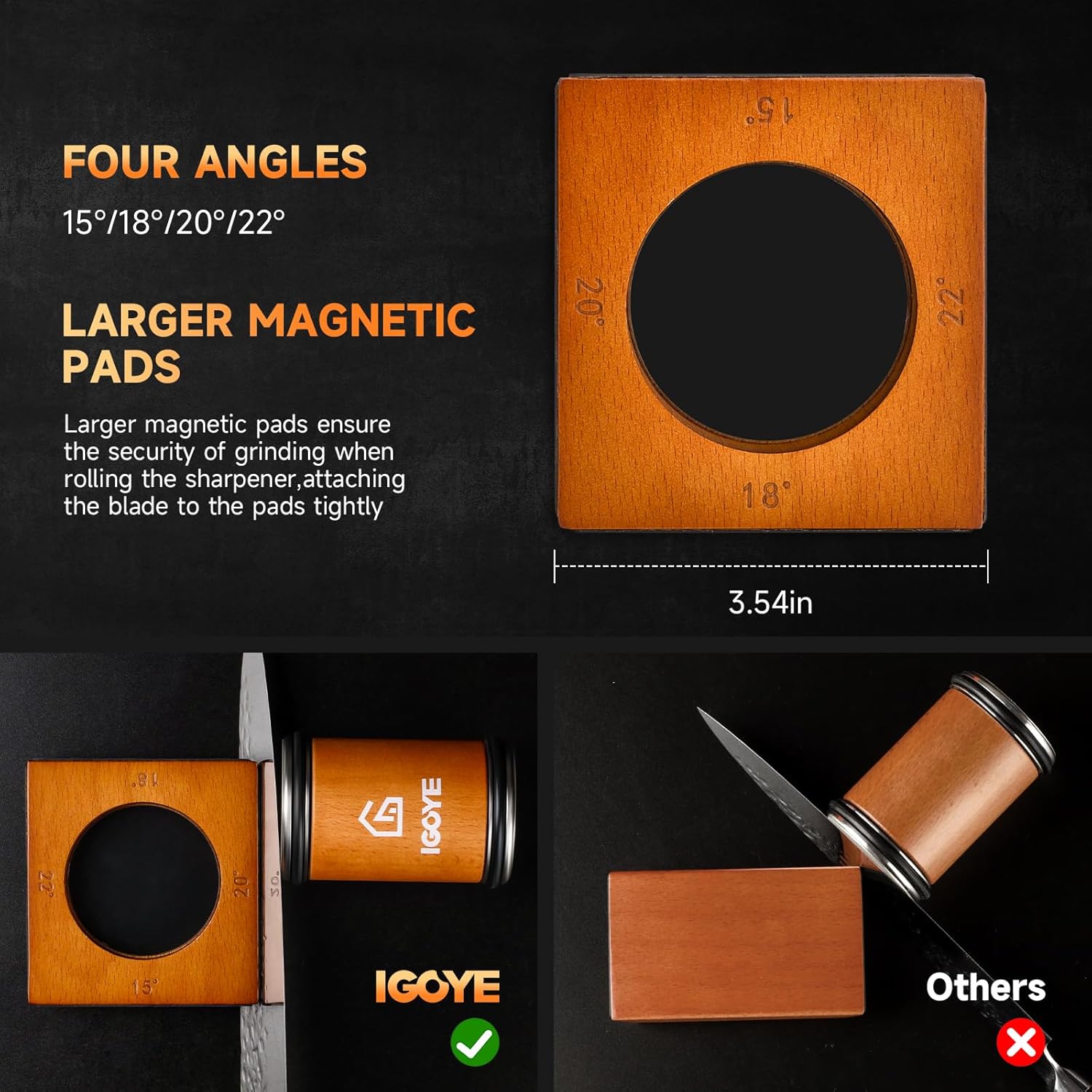• 【MULTI-ANGLE MAGNETIC SUPPORT】Knife sharpener every angle magnetic support contains 3 N42 High quality super-strong magnets to keep your knife firmly attached to the base without moving, has 4 different sharpening angles (15°,18°, 20°, 22°degree) equipped with anti slip silicone, to serve your needs and demands perfectly.
