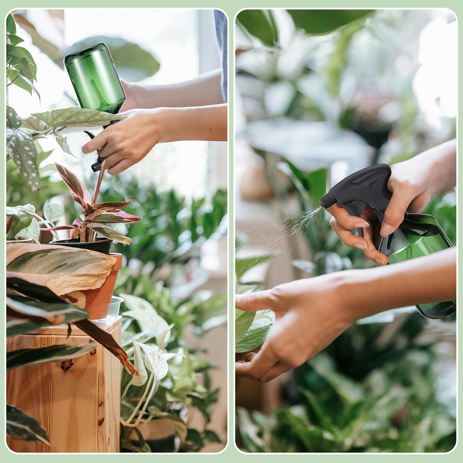 Baderke 2 PCS 360° Spray Bottle, 16 oz Upside Down Spray Bottles, Plastic Spray Bottles is Nice for Plants, Cleaning Solutions, Durable Nozzle w/Fine Mist and Stream Setting(Green)
