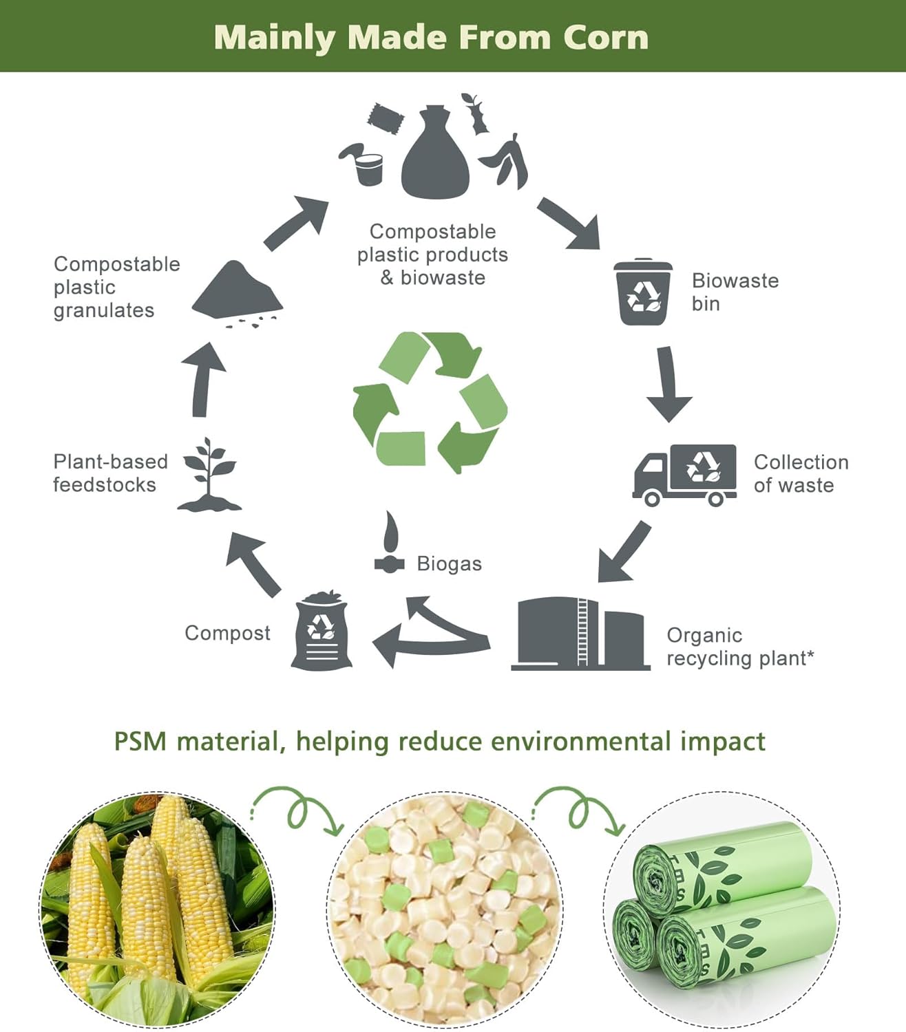 • Made from plants, not plastic: These 3 gallon compostable bags are made from plant-based materials, such as corn starch, offering a sustainable alternative to traditional plastic bags. These 3 gallon compost bags meet ASTM series composting standards and are designed for composting in industrial facilities, reducing waste and contributing to a cleaner, greener planet