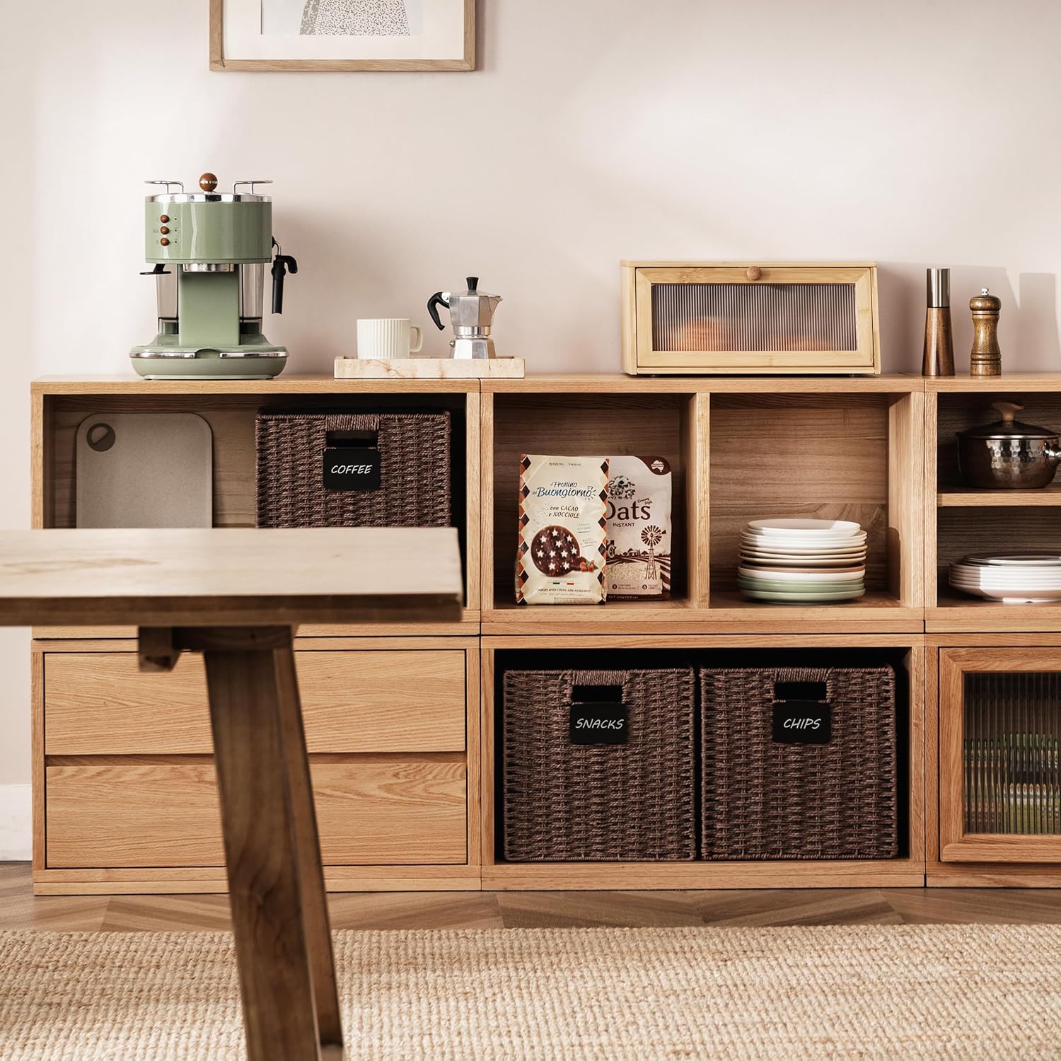 UBBCARE 4 Pack Wicker Basket, 12×12 Storage Cubes with Label, Foldable Cube Storage Bin with Handle, Square Storage Basket for Shelves, Woven Paper Rope Basket for Organizing, Brown