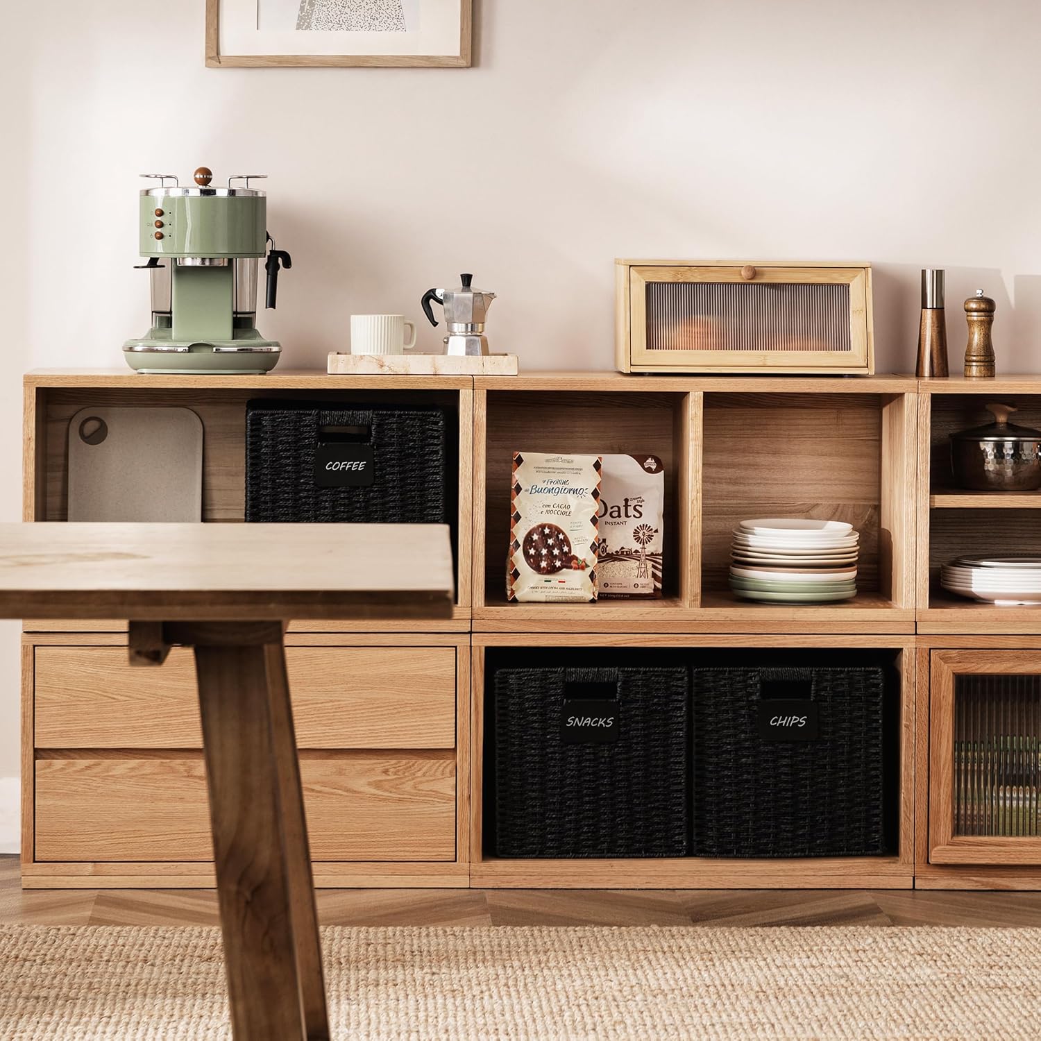 UBBCARE 4 Pack Wicker Basket, 10.5×10.5 Storage Cubes with Label, Foldable Cube Storage Bin with Handle, Square Storage Basket for Shelves, Woven Paper Rope Basket for Organizing, Black