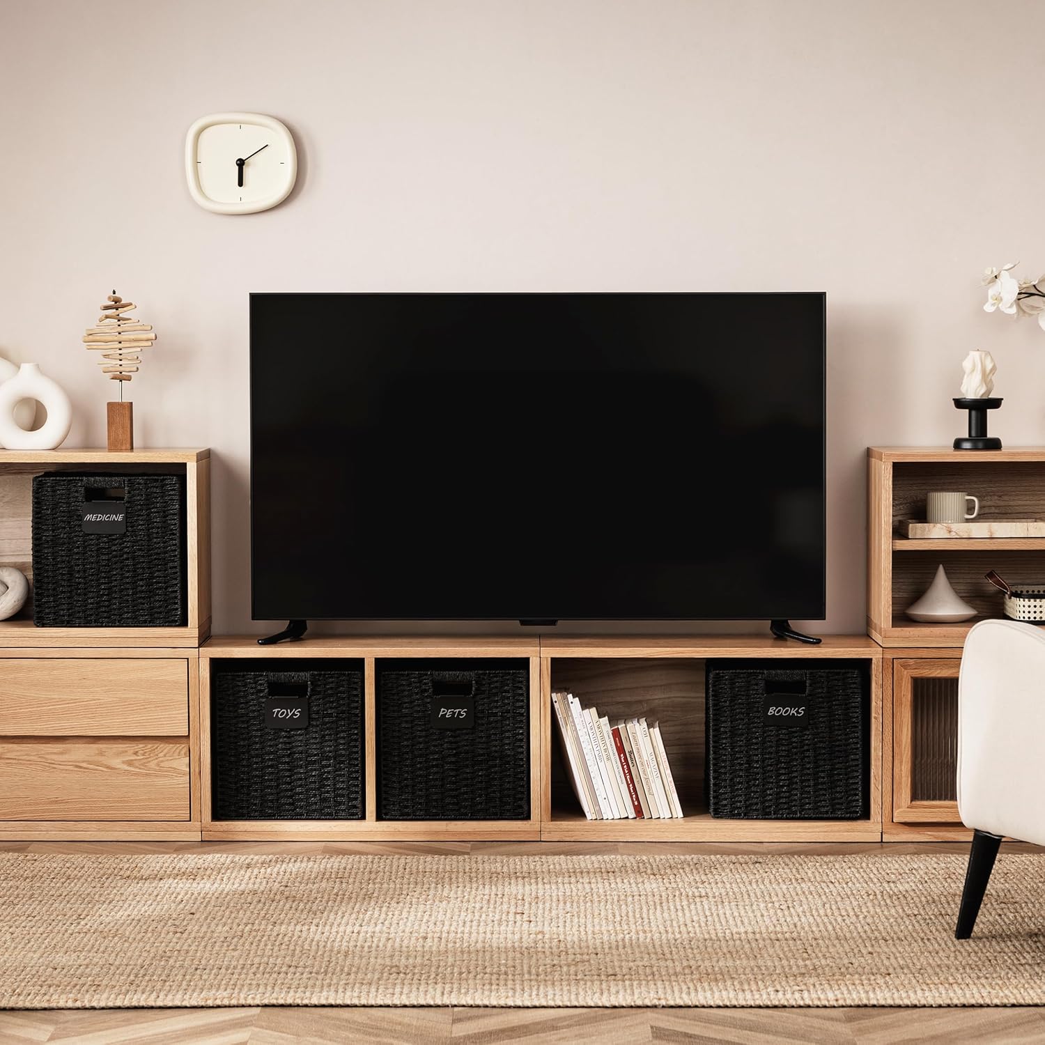 • Perfect size basket: 12L×12H×11.5W basket for storage, large capacity, convenient to store more daily necessities. The size of these storage cube bins fits the IKEA KALLAX shelf unit series, living room TV cabinet, shelves, closets office table and nursery room cube bookshelves.