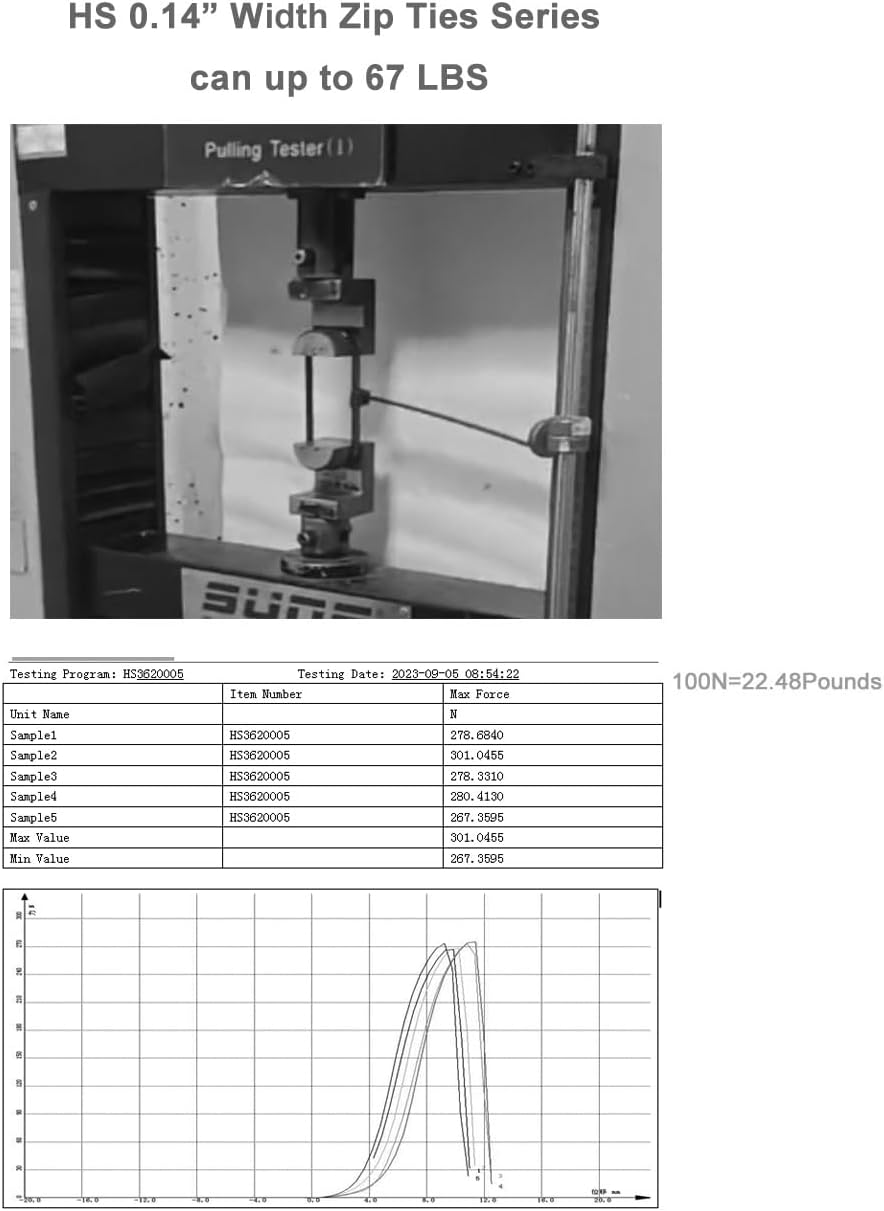 • Details: premium nylon 66,94v-2 fire and UV resistant,UL and Rohs certification,40 lbs tensile strength industrial standard,can up to 60 lbs,high performance of all HS zip ties