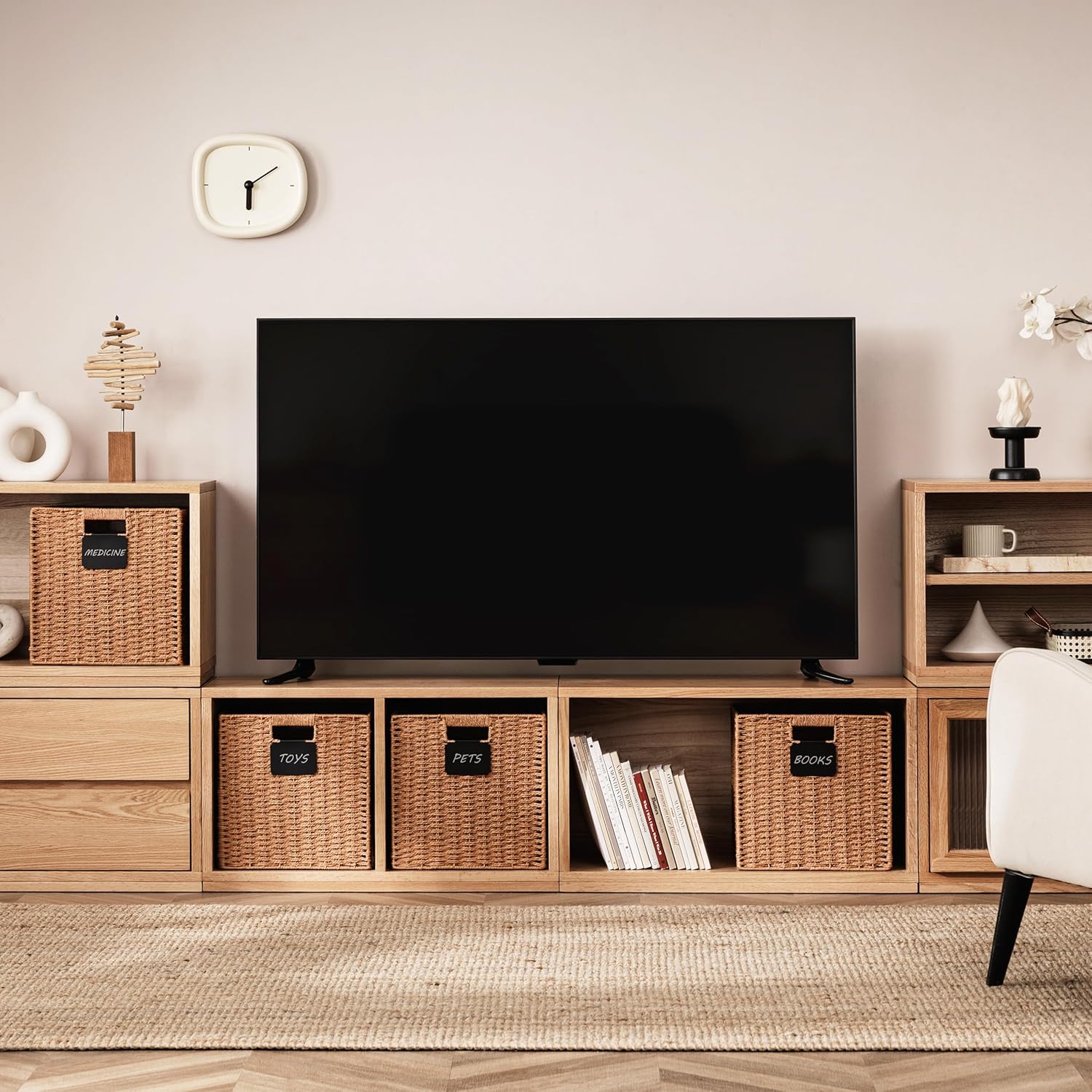 UBBCARE 4 Pack Wicker Basket, 13×13 Storage Cubes with Label, Foldable Cube Storage Bin with Handle, Square Storage Basket for Shelves, Woven Paper Rope Basket for Organizing, Caramel