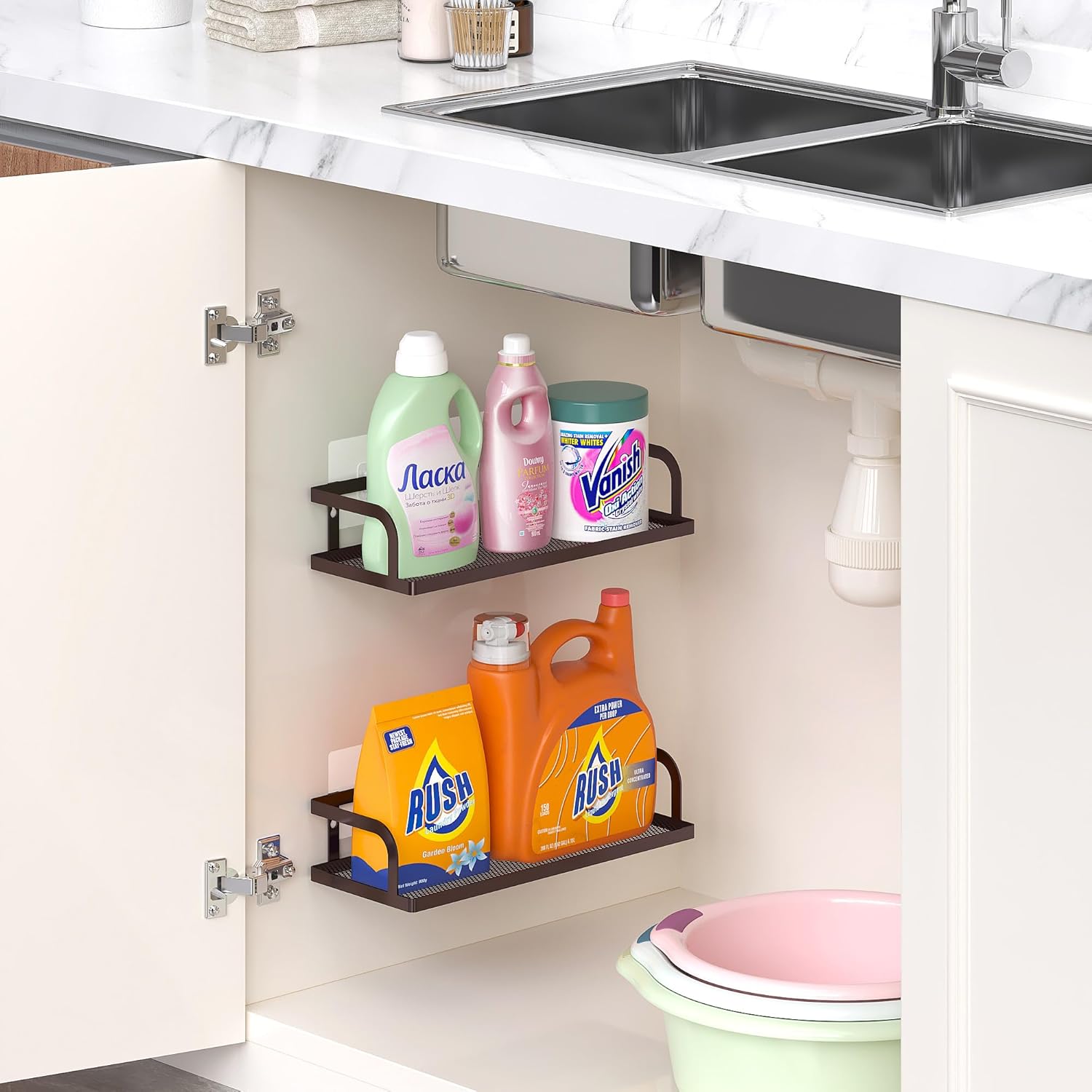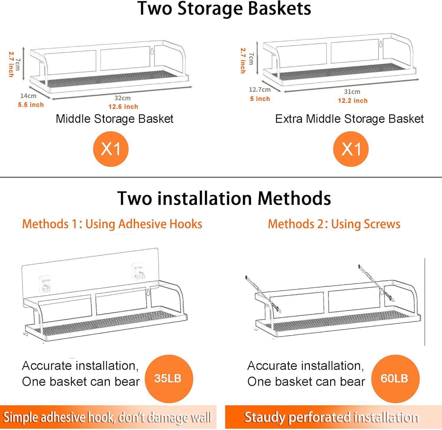 PUSDON Metal Wall Hanging Basket 2 Packs DIY Suitable for Multiple Scenes - Middle Bronze Hollowout