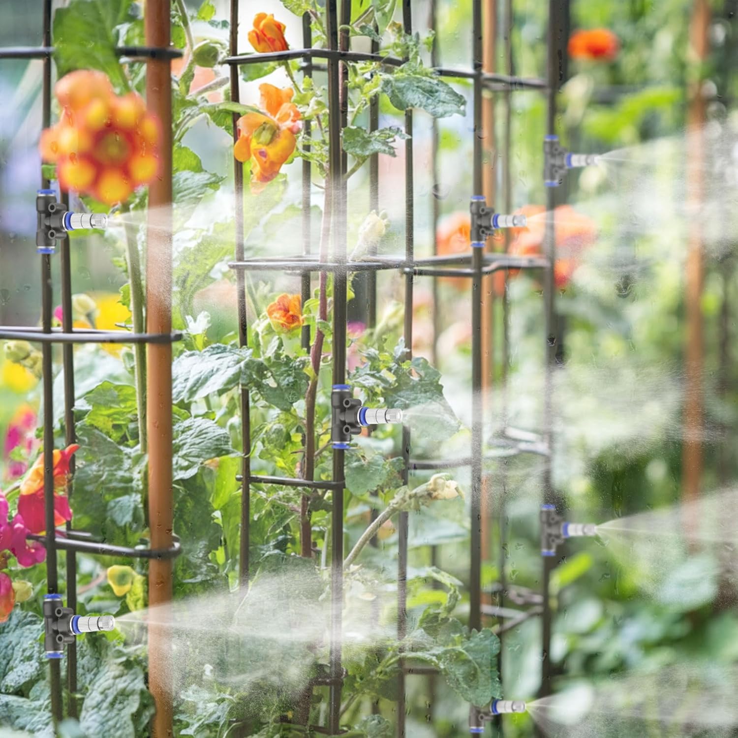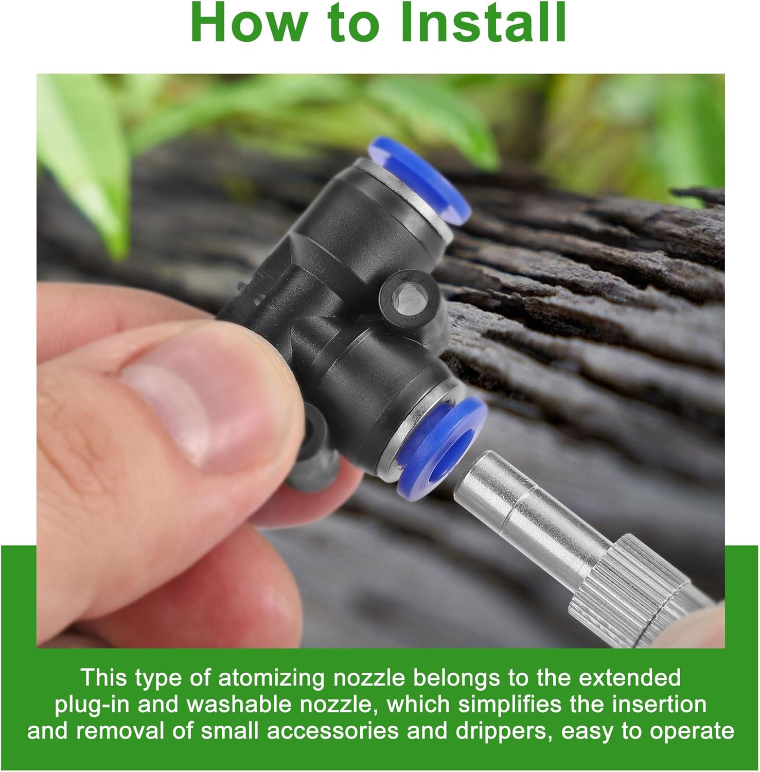 • 【Easy to Install】: It is very easy to install and dissemble. Just directly put the mister nozzles with filter mesh into 1/4" misting nozzle tee, and then connect the misting nozzle tee to the 1/4" tubing pipe easily, no need of heating, more convenient but also faster than traditional dripping irrigation systems. If connected wrong, it can be easily disassembled and reconnected, not easy to fall off and leak.