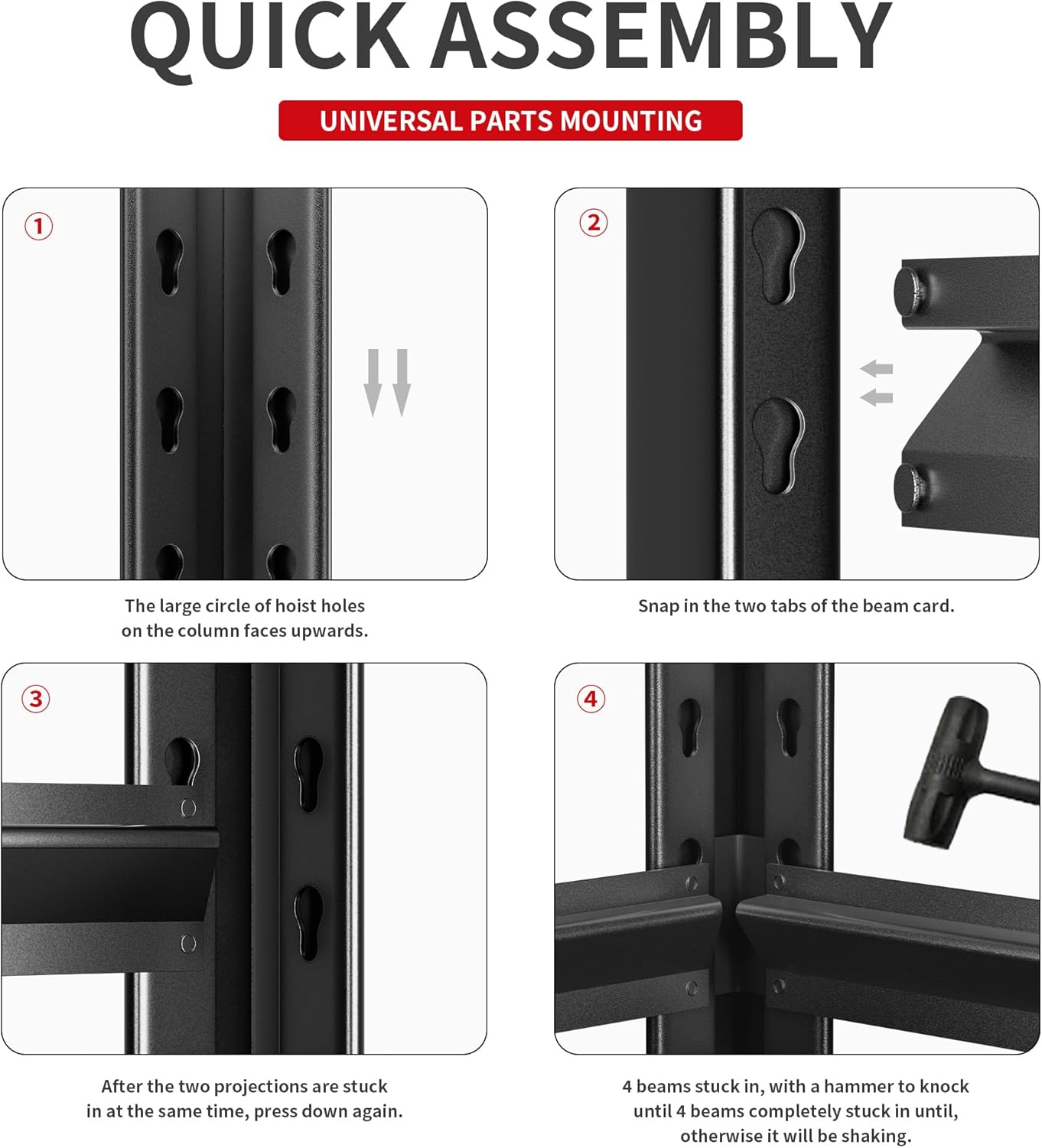 • 🍖【Durable 5 Tier Shelving Unit for Organized Storage】Designed for strength and stability, this 5 shelf storage unit is a must-have for any home or workshop. The heavy duty garage shelf holds heavy items effortlessly while maintaining its structure. Perfect for storing everything from tools to household items, the storage shelving system offers easy access and organization. With a simple design, it’s easy to assemble and perfect for maximizing garage space.