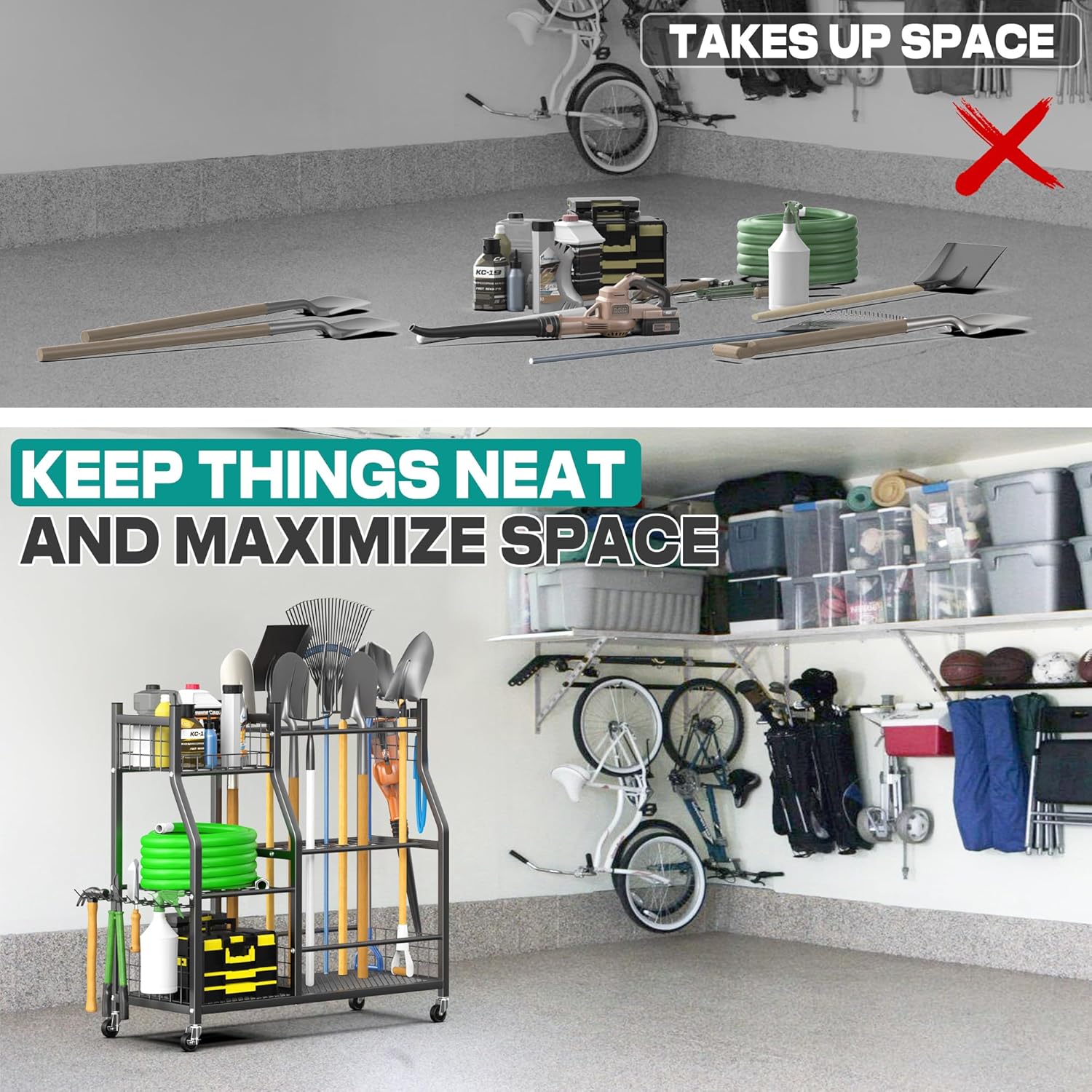 • Extra Large Storage Space: Measuring 36.25" (L)×15.75"(W)×37.25"(H), this garden tool organizer offers ample storage for heavy-duty tools, farm implements, and cleaning equipment. Perfect for gardens, garages, basements, and sheds