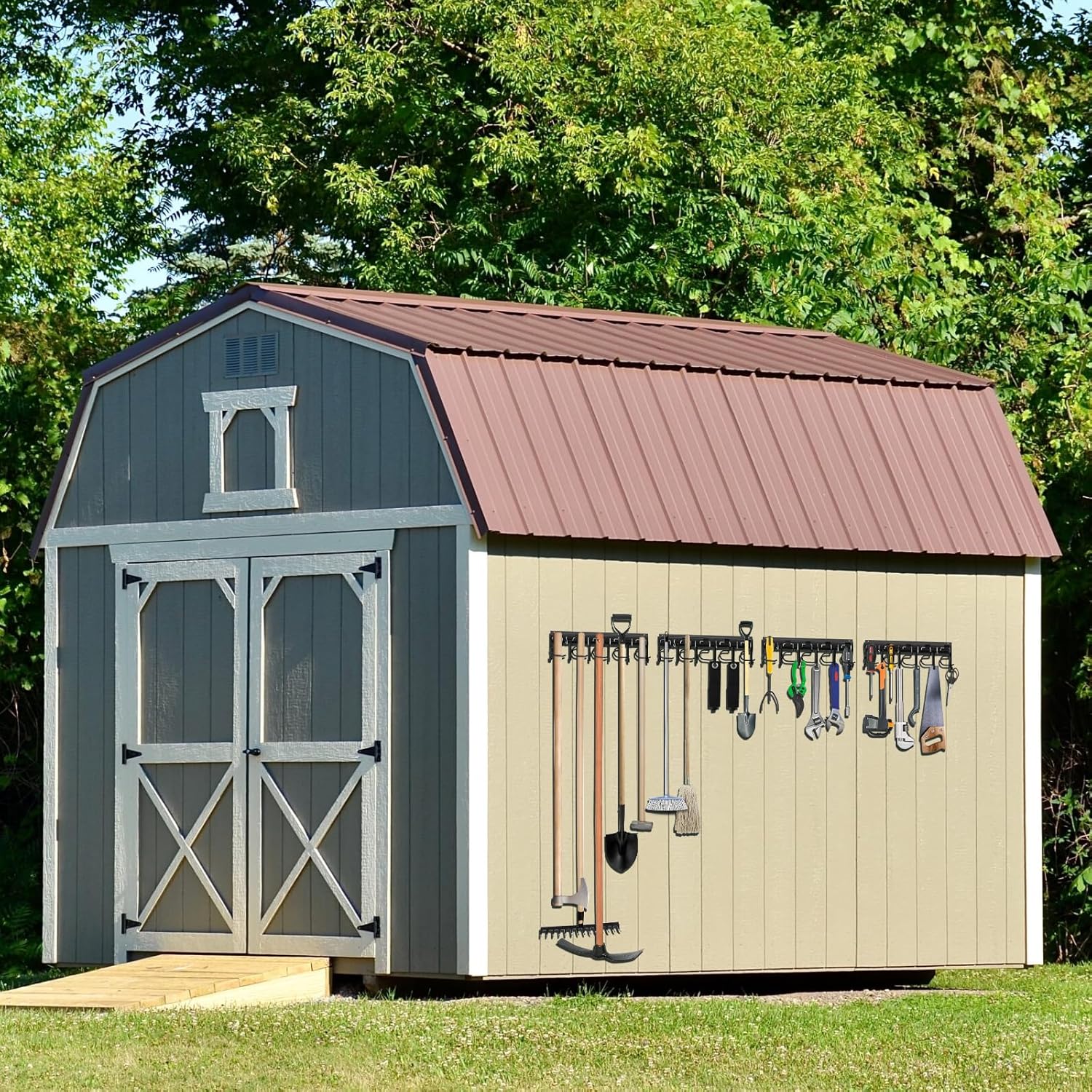 • VERSATILE FOR MULTIPLE USES: This all-in-one garden tool holder wall mount is perfect for organizing everything from mops and brooms to shovels, axes, sleds, and even bicycles. Whether you're outfitting a garage, yard, garden shed, utility room, or workshop, this system turns any wall into efficient garden tool storage. It’s an excellent choice for those looking for a reliable yard tool organizer for garage or an upgrade to their storage space.