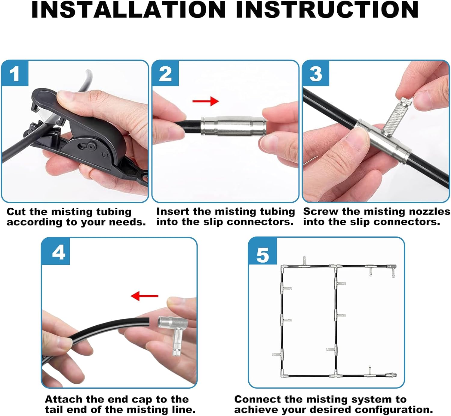 • 【Quick & Easy Setup】 Designed for seamless use with 3/8‑inch Nylon, PE, or PU tubing, the slip-lock connectors let you install or remove the system effortlessly—no extra tools required.