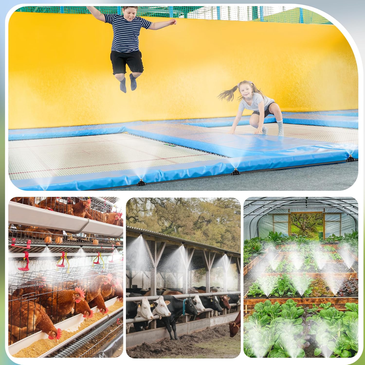 • EASY TO INSTALL: The misters for outside patio is extremely simple to set up. Use strong scissors to cut the water pipe and trim it to your desired length based on your requirements. The design allows for easy disassembly and cleaning, ensuring convenience. The misting nozzles of the water misters feature a 0.02" orifice (0.5 mm), which guarantees no clogging. According to experimental testing, these brass misting nozzles of the misters for outside patio can reduce your cooling costs by 30% to 40%