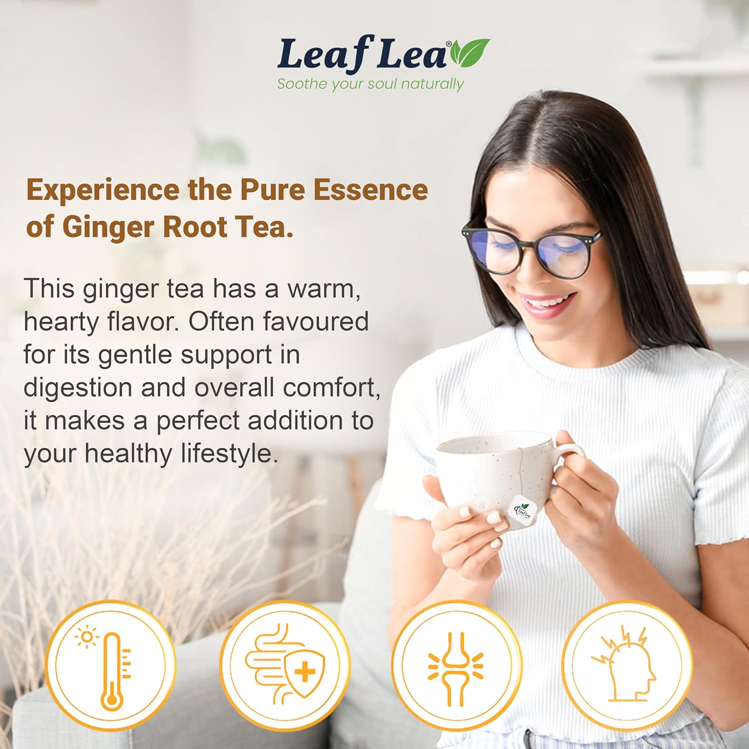 LeafLea 160 Ginger Tea Bags, Pure Ginger Root Herbal Tea, Spicy & Comforting, Supports Digestion & Immune Health, Caffeine Free, Sugar Free, Non-GMO, Vegan, Individually Wrapped for Freshness